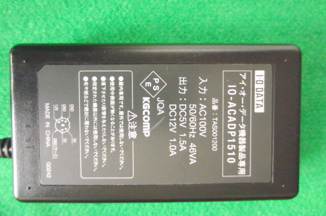 中古品 I.O DATA アイ・オー・データ IO-ACADP1510 ACアダプター★品番 TAS001200★出力: DC5V 1.5A DC12V 1.0A★テスターで『1.196V』通電確認済みです。●汚れ傷等はございません。●中古品ため神経質な方はご入札をご遠慮下さい。●ノークレーム、ノーリターンでお願いいたします。●レーターパックプラス600円で発送します。