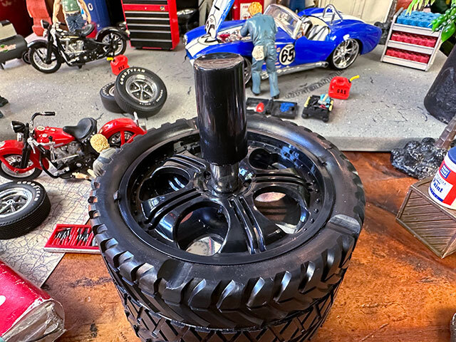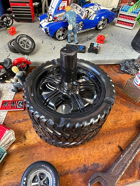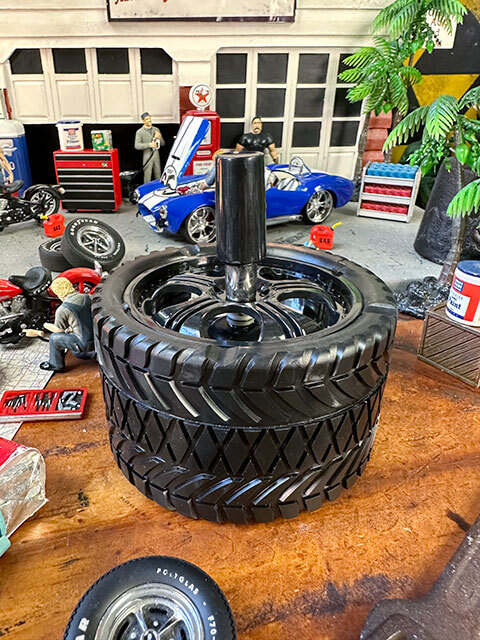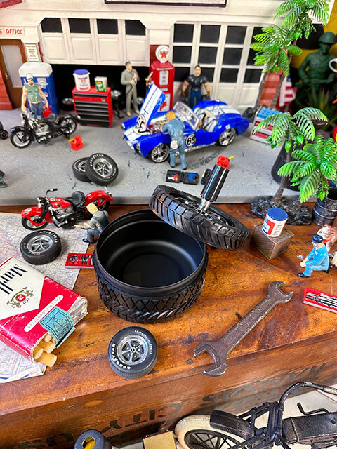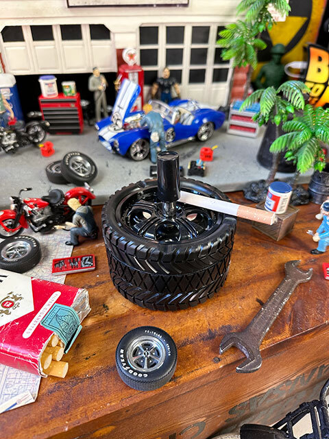 タイヤはタイヤでもドチューンされたカスタムカーに履かせるタイヤホイールをモチーフにしたタイヤ型灰皿です。