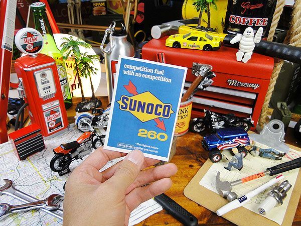 アメリカのフリーマーケットで古いツールボックスを見つけるとそこへベタベタと貼られてそうな年代物のヴィンテージステッカーを古めかしさそのままに復刻させたノスタルジック・ガレージステッカーです。