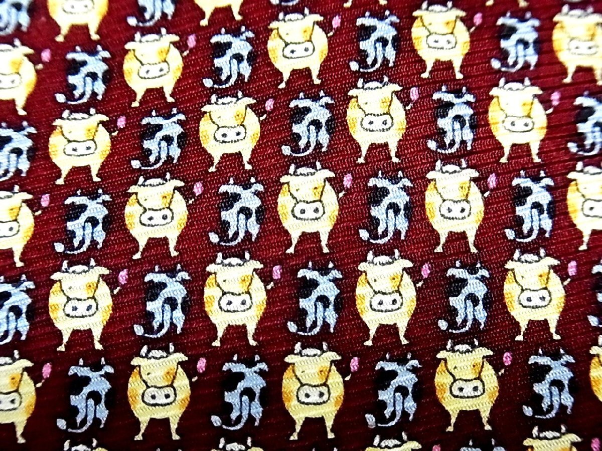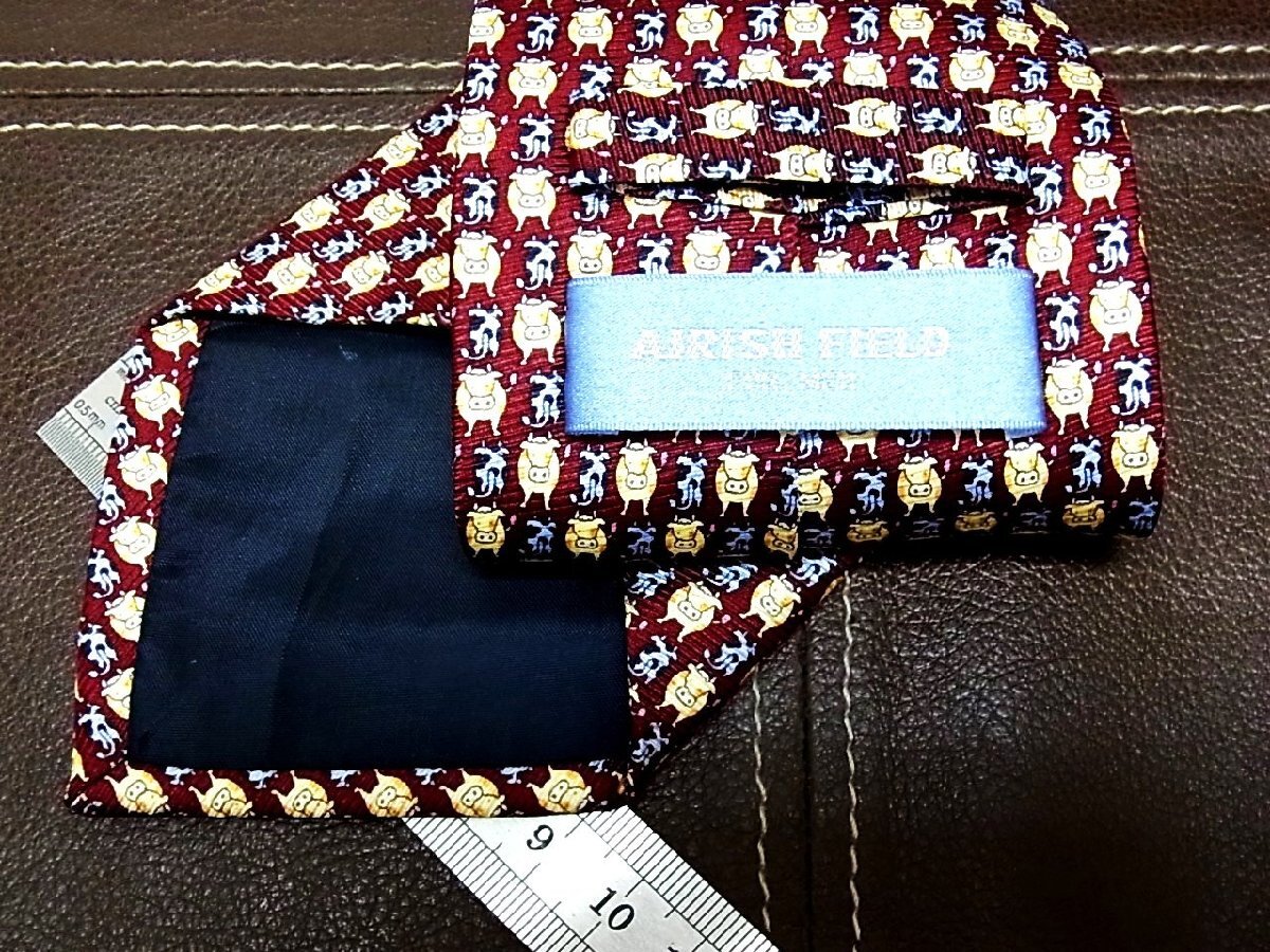 ♪b3068【牛 ウシ 動物・シルク100%】アイリッシュフィールド「美品」ネクタイ♪