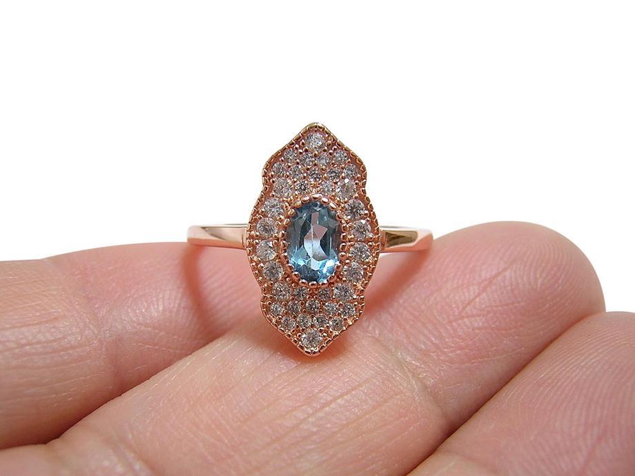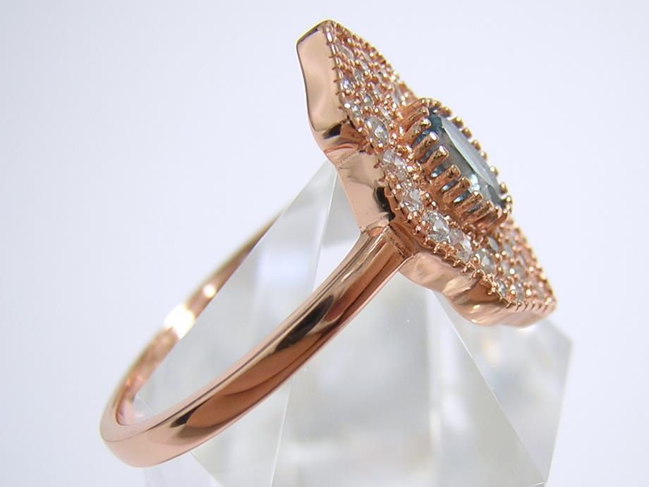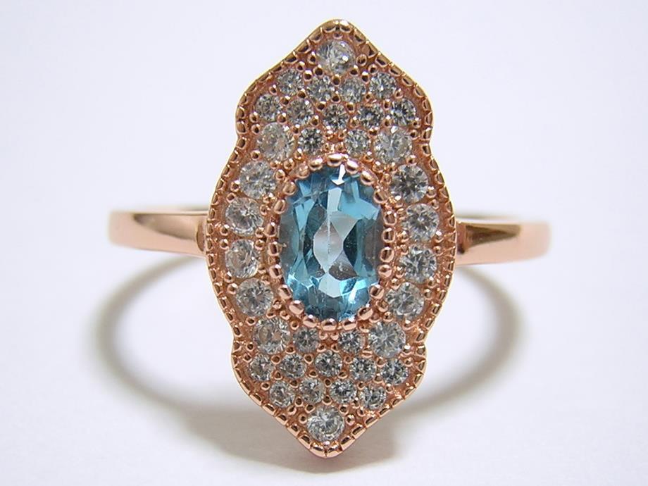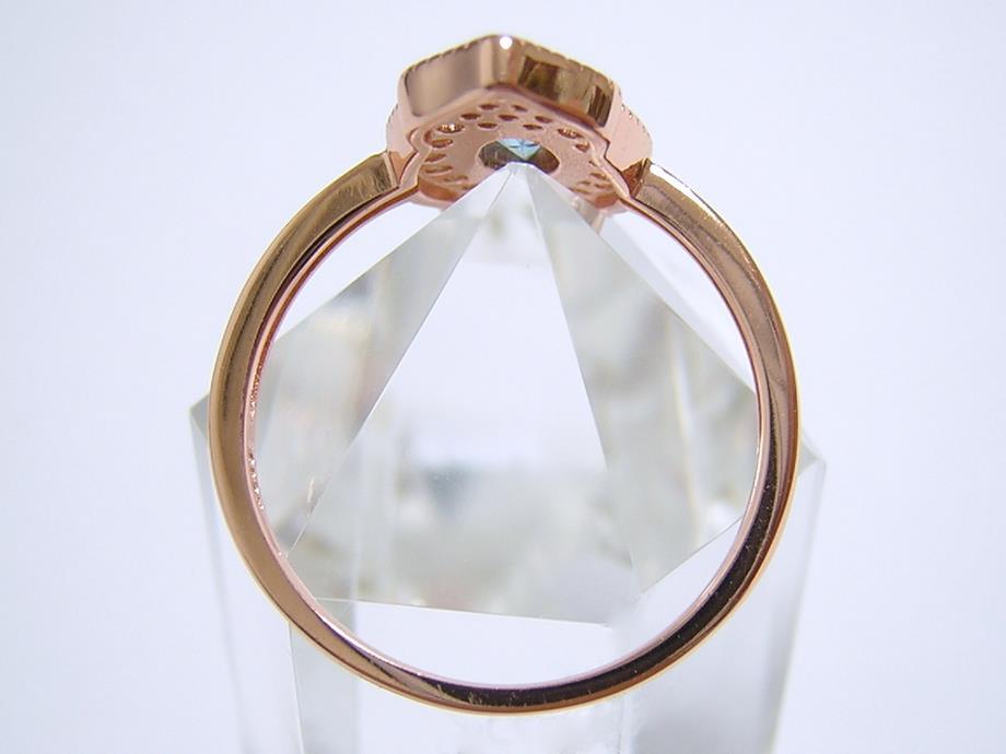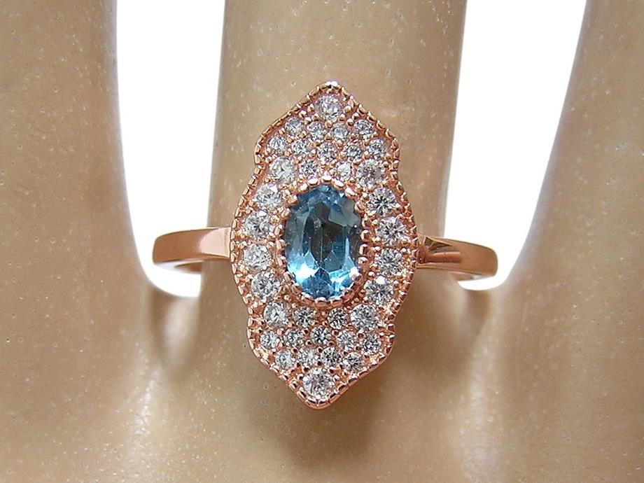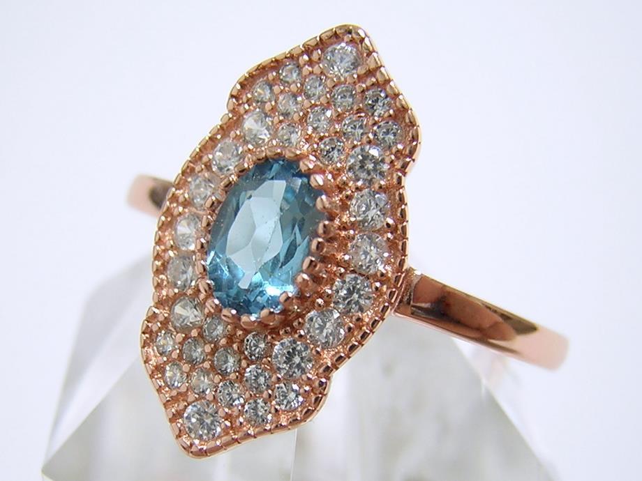 天然ブルートパーズとキュービックジルコニアを使用したデザインリングです。 ブルートパーズの大きさは約5.5×3.5mmです。 【中石】天然ブルートパーズ 【産地】アフリカ産 【処理】非加熱 【カット】オーバルファセットカット 【脇石】キュービックジルコニア 【重さ】2.7g 【サイズ】16.5号 (お直しは承れません) デザイン部:縦17mm×横20mm 【素材】シルバー925 (14金ピンクゴールド仕上げ) 【刻印】S925 【状態】新品 ※地金部分に製作時からの小傷やスレがあります。 |