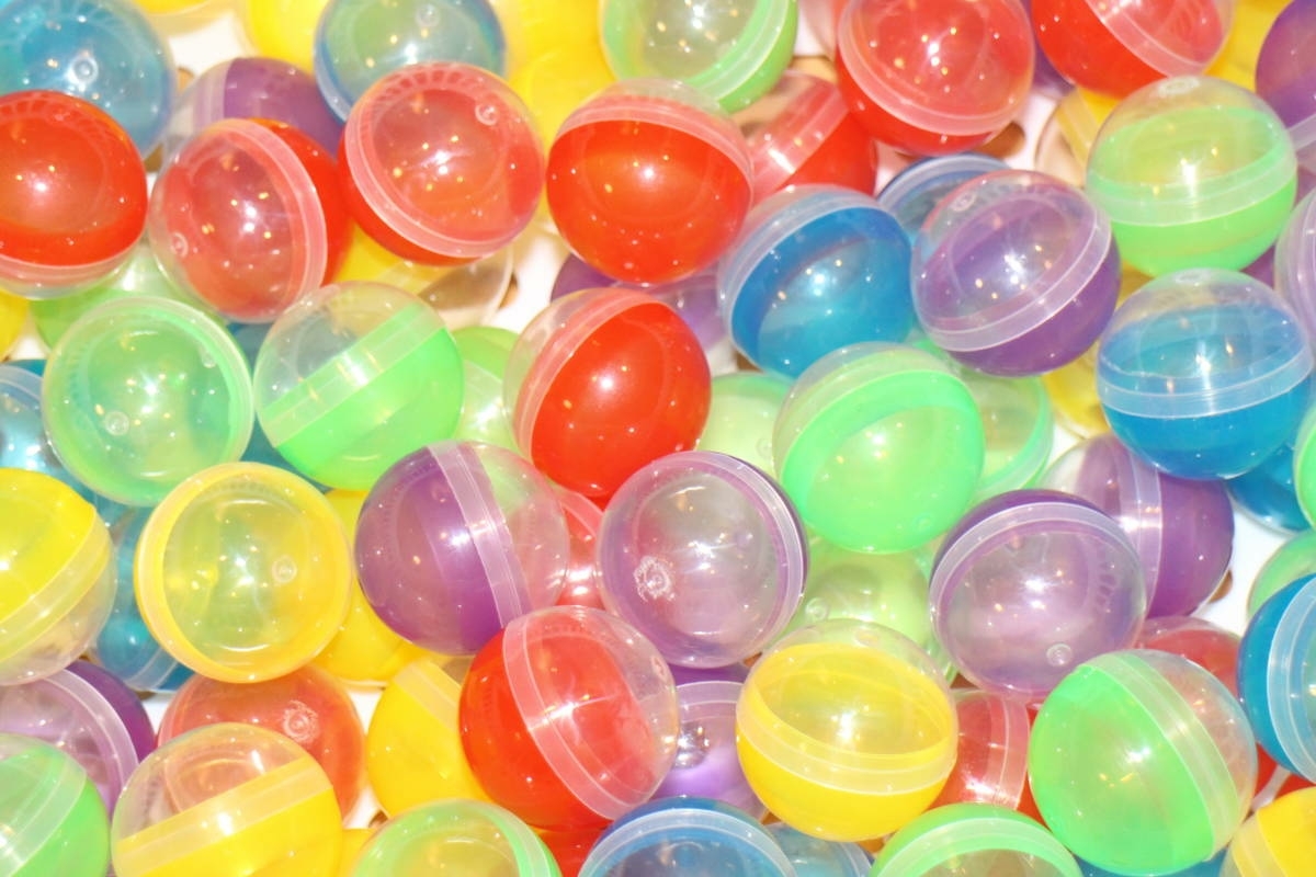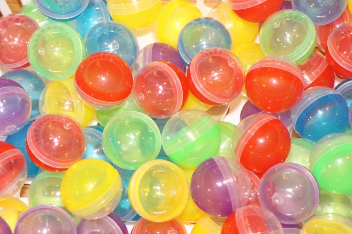 近年生産された38mmのカプセルです。コスモス50円機に使用できるかは不明です。固めですが、つなぎ目を押し潰すように開けます。