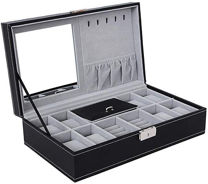 内部容量:8本腕時計収納、アクセサリー収納・指輪・イヤリング・ネックレス・ブレスレット・ピアス等のジュエリーのアクセサリー用小物入れ