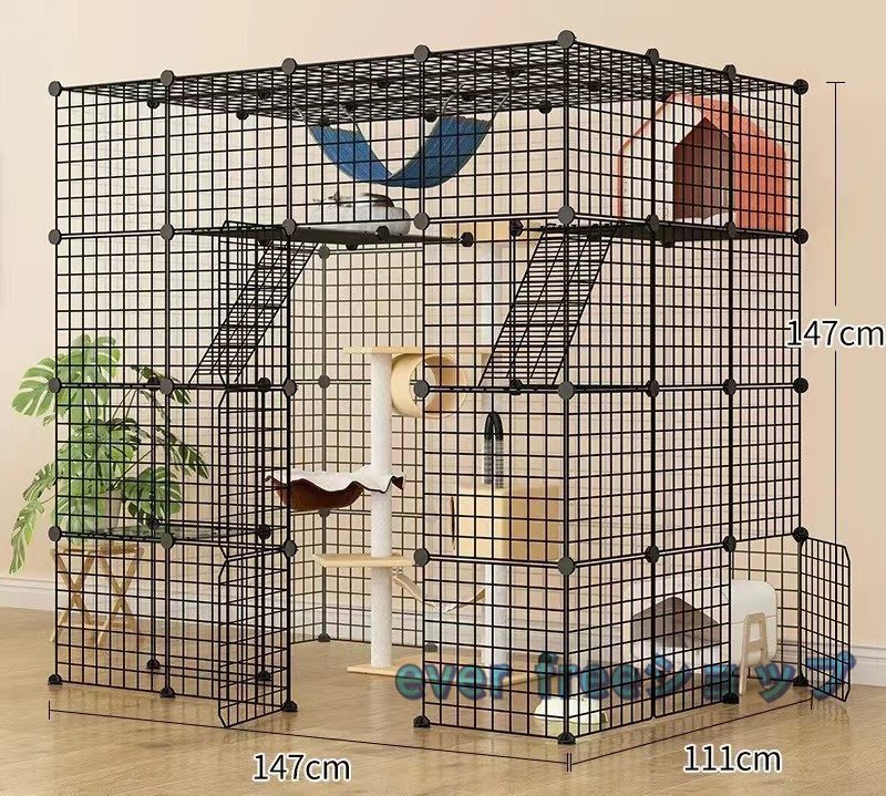 超人気☆大型 ドア付き折り畳み式室内用猫用ケージ 移動便利 シンプル猫脱走 多頭飼い猫 ケージ 大型折りたたみ キャットケージ