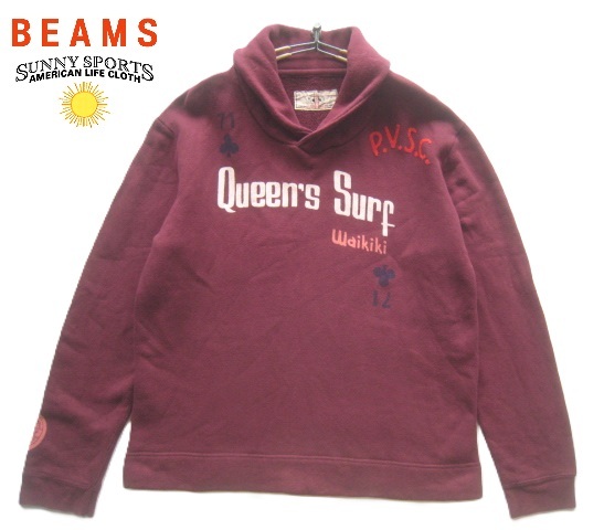 品!!サニースポーツ SUNNY SPORTS*BEAMS別注 Queen’s Surfプリント ショールネックスウェット 40 L ワイン ビームス