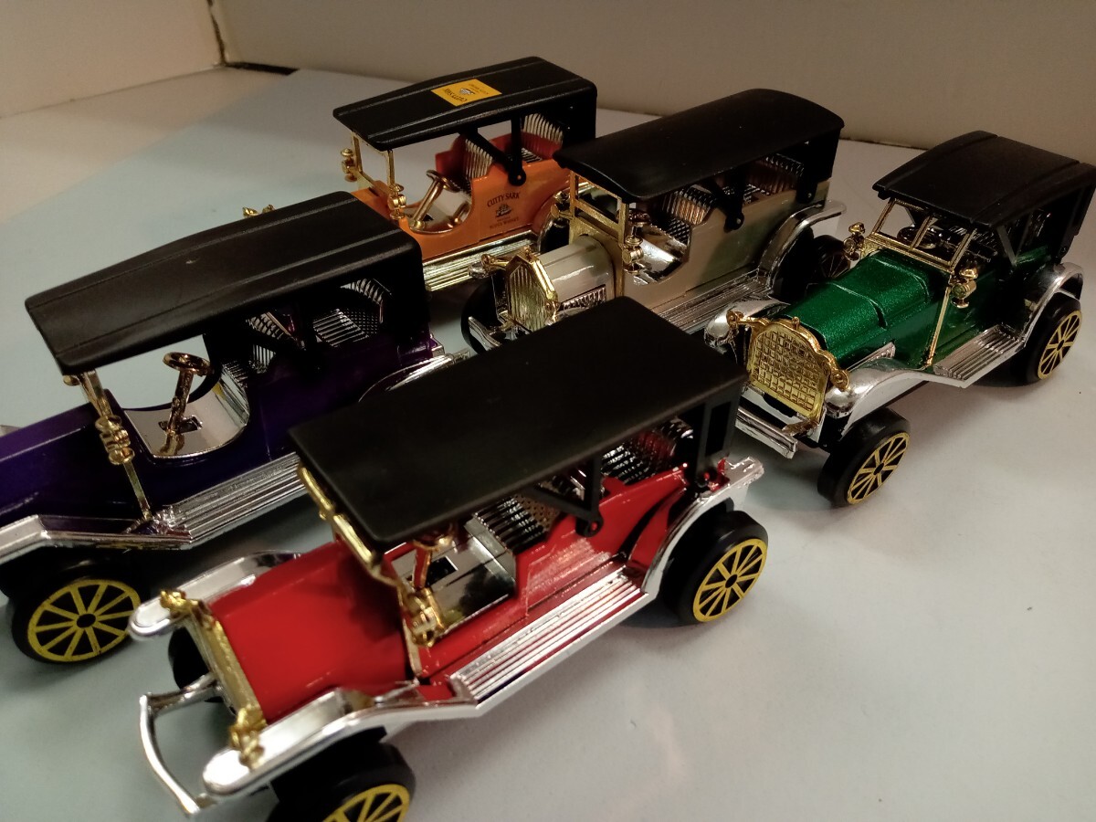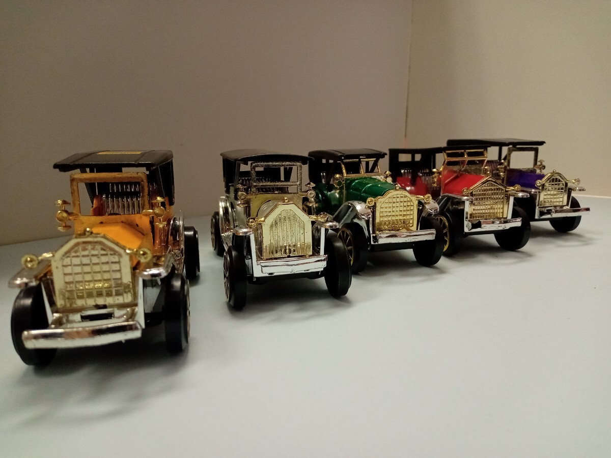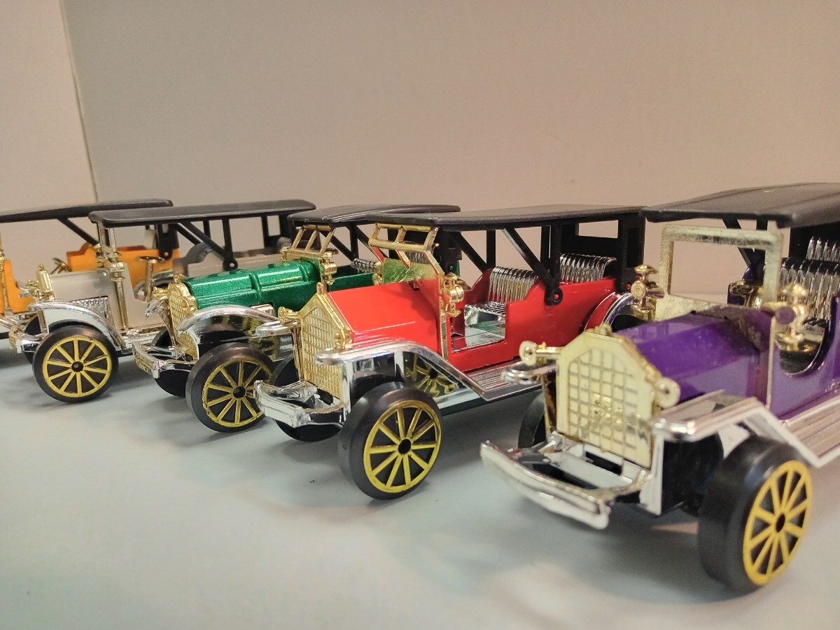 プラスチック製のクラシックカーのセットです。5色なのでお部屋に飾ると結構かわいい。
