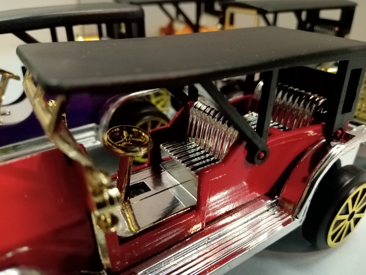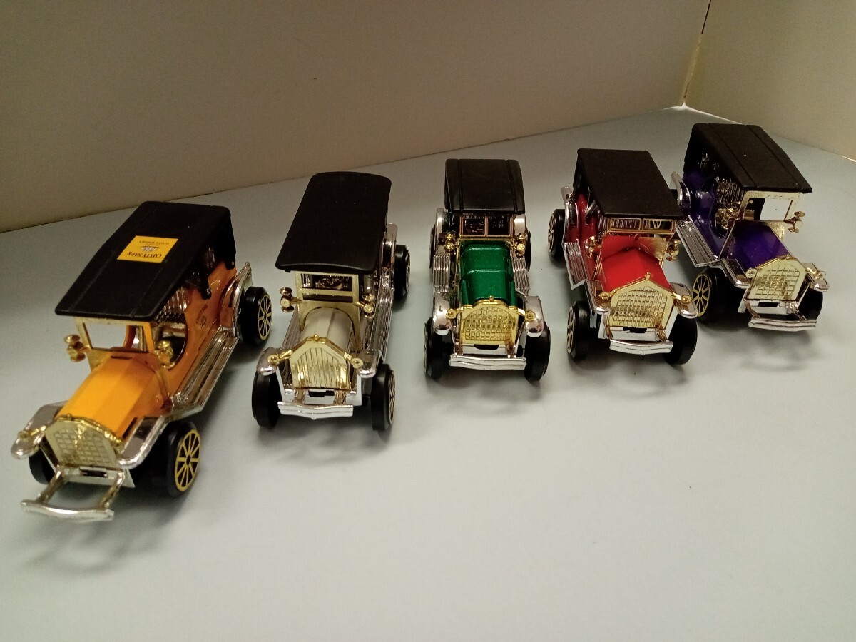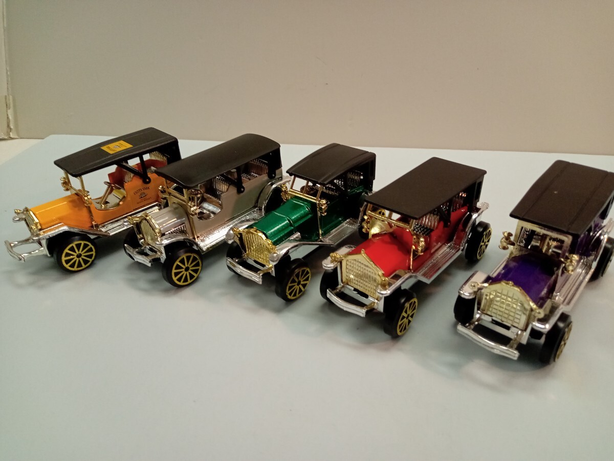 プラスチック製のクラシックカーのセットです。5色なのでお部屋に飾ると結構かわいい。