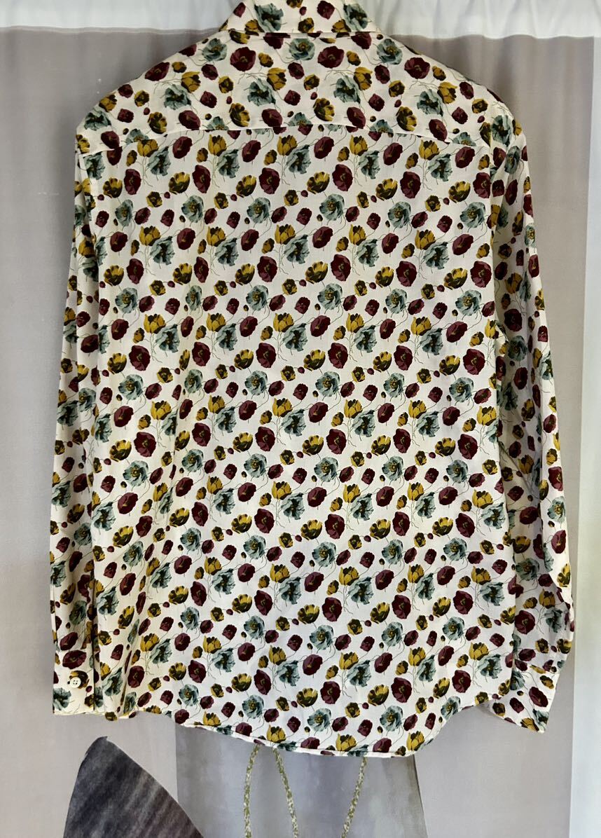 ・可愛いローズが全体的に散りばめられてデザインされたお洒落な花柄シャツとなります。