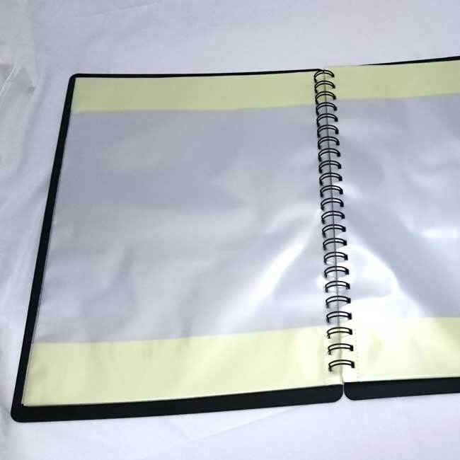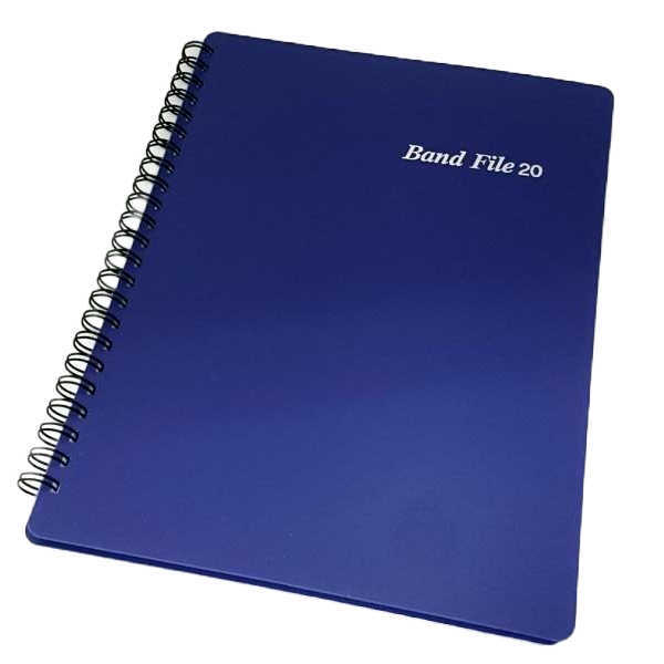 上下の帯にファイルをはさんで楽譜自体は露出しているのでフィルムが反射して楽譜が見にくいということもなくさらにファイルしたまま楽譜に書き込むことが出来るという至れり尽くせりのファイルです