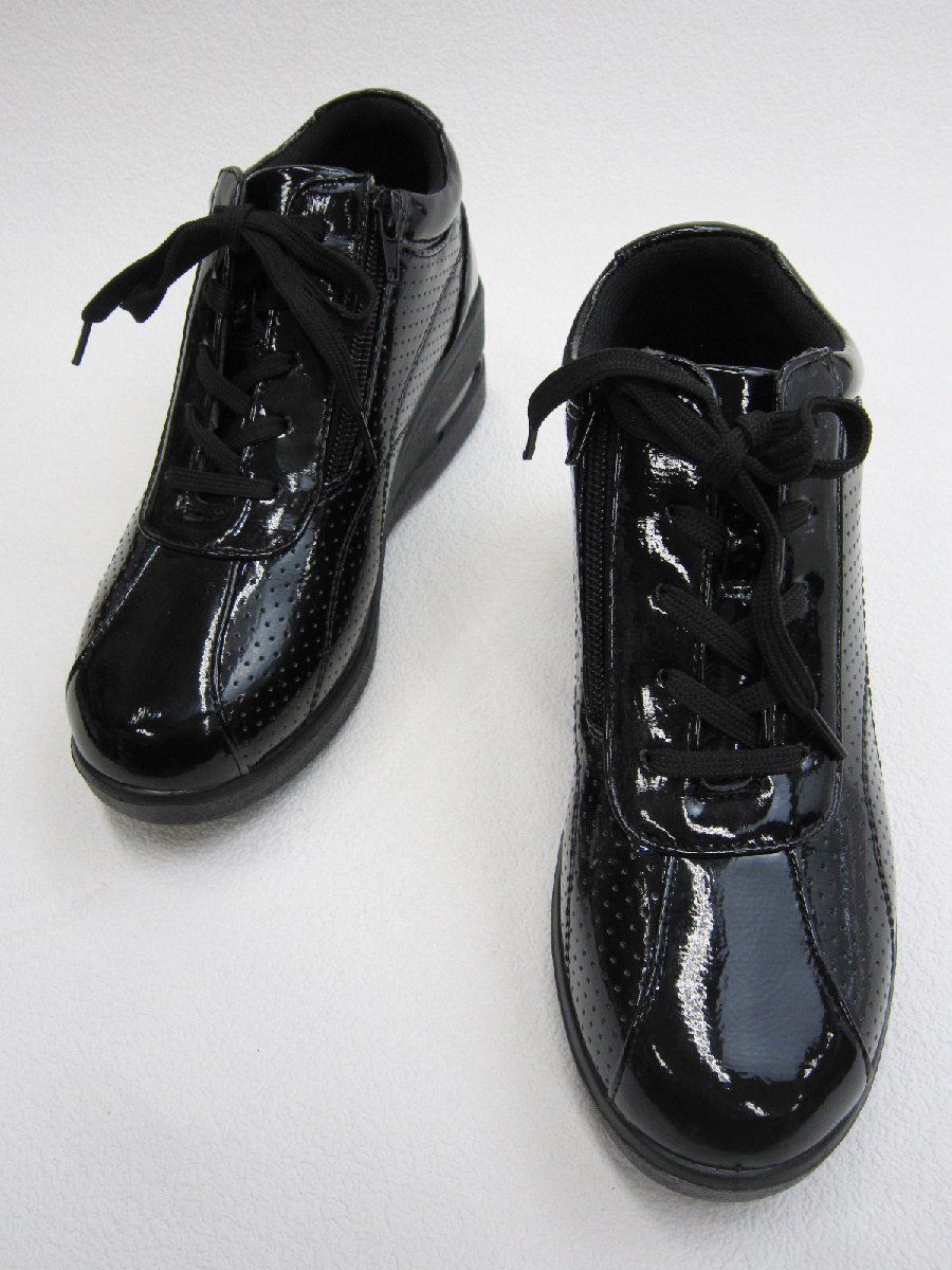 ♪♪♪ 商品の詳細案内 ♪♪♪ | ★エアソール おしゃれ 3E サイドファスナー エナメル グリップ力【婦人 レディース】Laシューズ 黒 22.5cm 0テ |