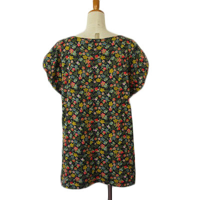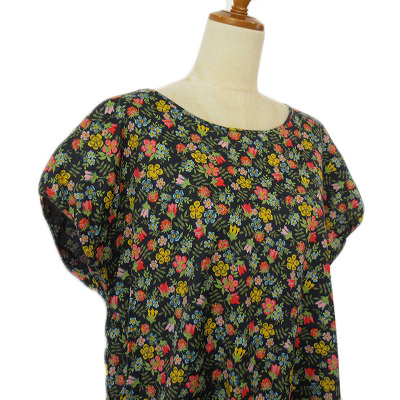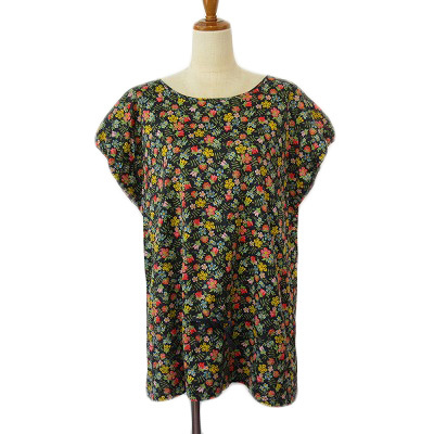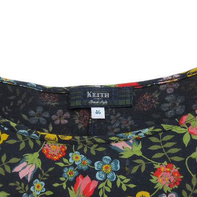 キース KEITH カットソー チュニック 花柄 フレンチスリーブ 46 黒 ブラック レディース