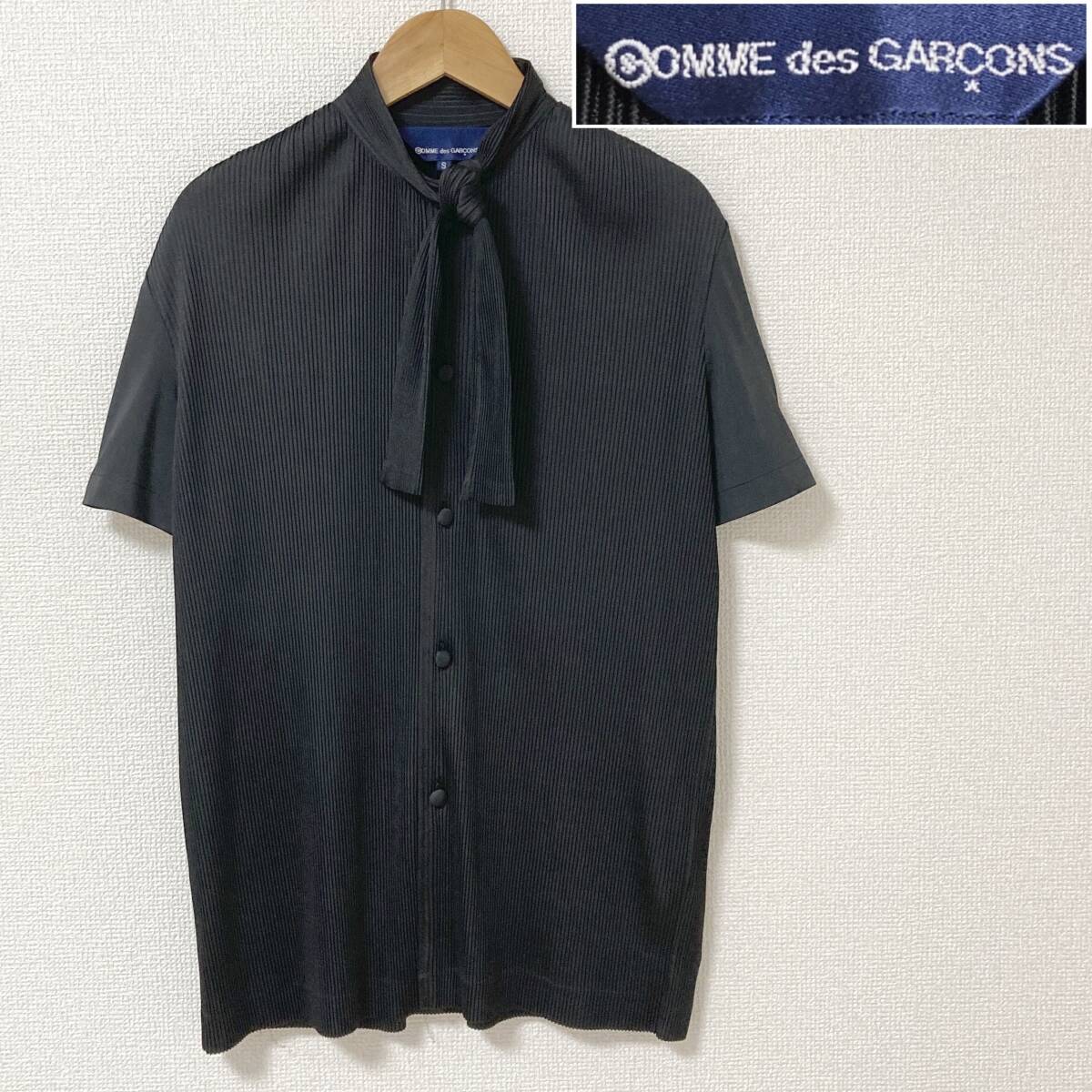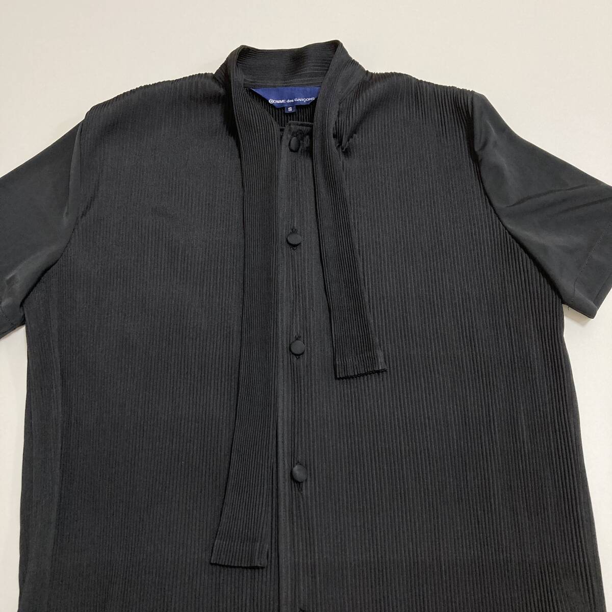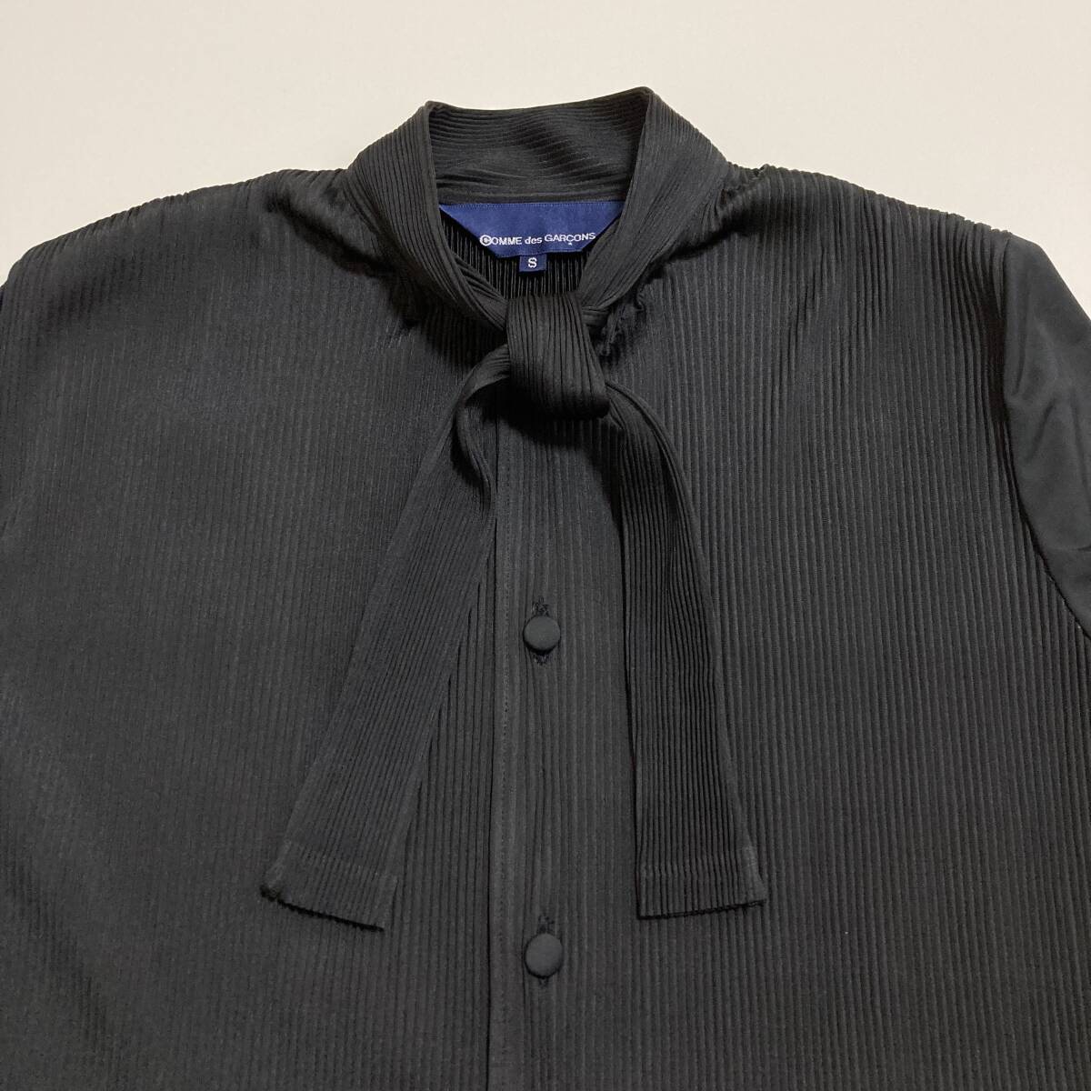 青山 AD1990 COMME des GARCONS プリーツ リボン ポリ 半袖 ブラウス ブラウス ブラック