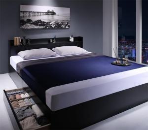 棚・コンセント付収納ベッド Milliald ミリアルド プレミアムポケットコイルマットレス付き クイーン【フレームカラー:ブラック】【寝具カラー:ブラック】です。