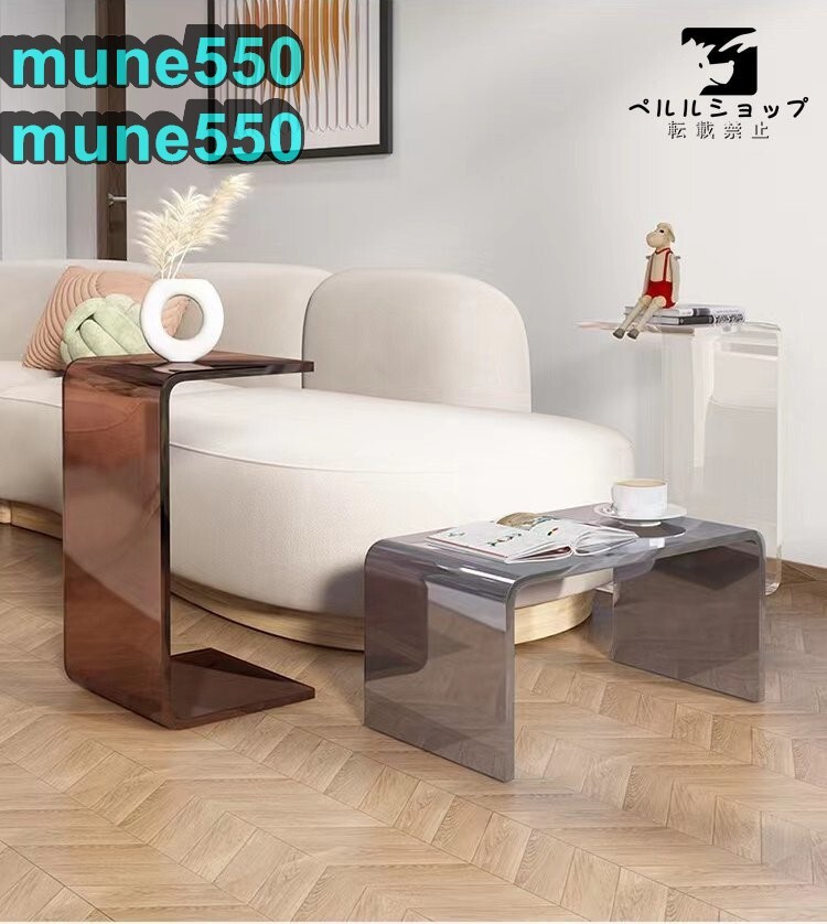 ●商品未使用 ■サイズ: 幅60cm×奥行30cm×高さ30cm ■材質 : アクリル 美しい透明感で理想のインテリアになるローテーブル。 透明感が上質で高級感のある雰囲気に引き立てます。お部屋を広く感じさせてくれます。 美しいコの字型のフォルム。シンプルで飽きのこないデザインは、どんな部屋にも合わせやすいです。 角のない丸みを帯びたデザインで、ペットや小さな子供がいても、安心してご使用いただけます。 割れにくく丈夫で耐久性に優れたアクリル素材。 ガラスより軽いアクリル素材なので、好きな場所で使えるという利便性もあります。 つなぎ目のない厚み12mmの丈夫な1枚板で作られています。 強度はもちろん、十分な安定感があります。 15Kgまでの耐荷重量で、パソコンデスクやテレビボードとしても最適です。