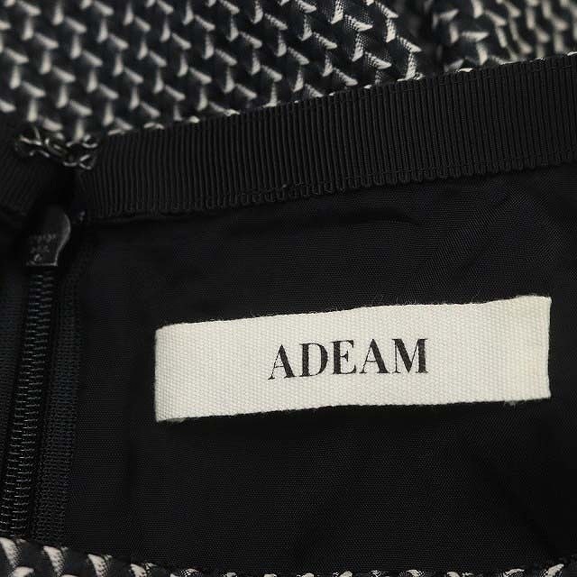 アディアム ADEAM ボリュームフレアスカート 総柄 ひざ丈 0 黒 ブラック アイボリー /HS ■OS レディース