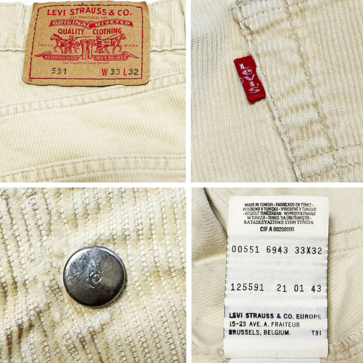 ■UK LEVIS 551-6943 細コーデュロイ・ジーンズ・ライトベージュW33L32 USED美品■ | |