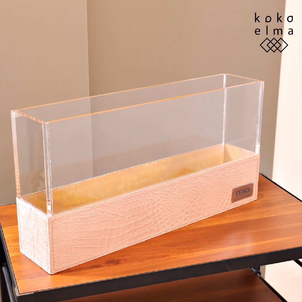 FENDI CASA フェンディカーサ フラワーベース 花瓶 フラワースタンド アクリル クロコ型押し イタリア エレガント ラグジュアリー EE322