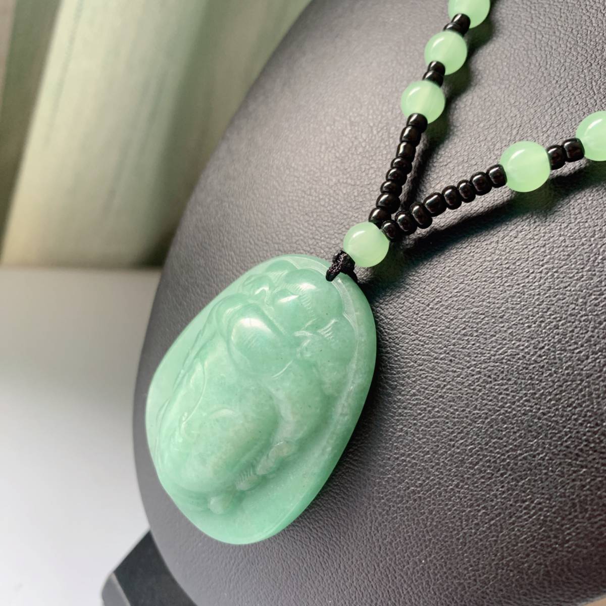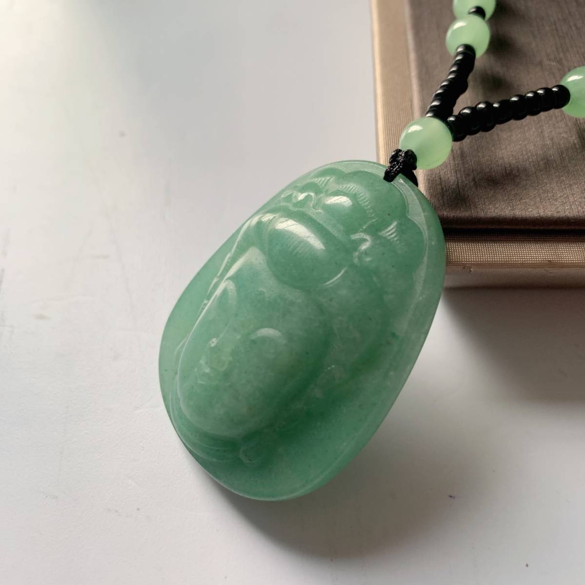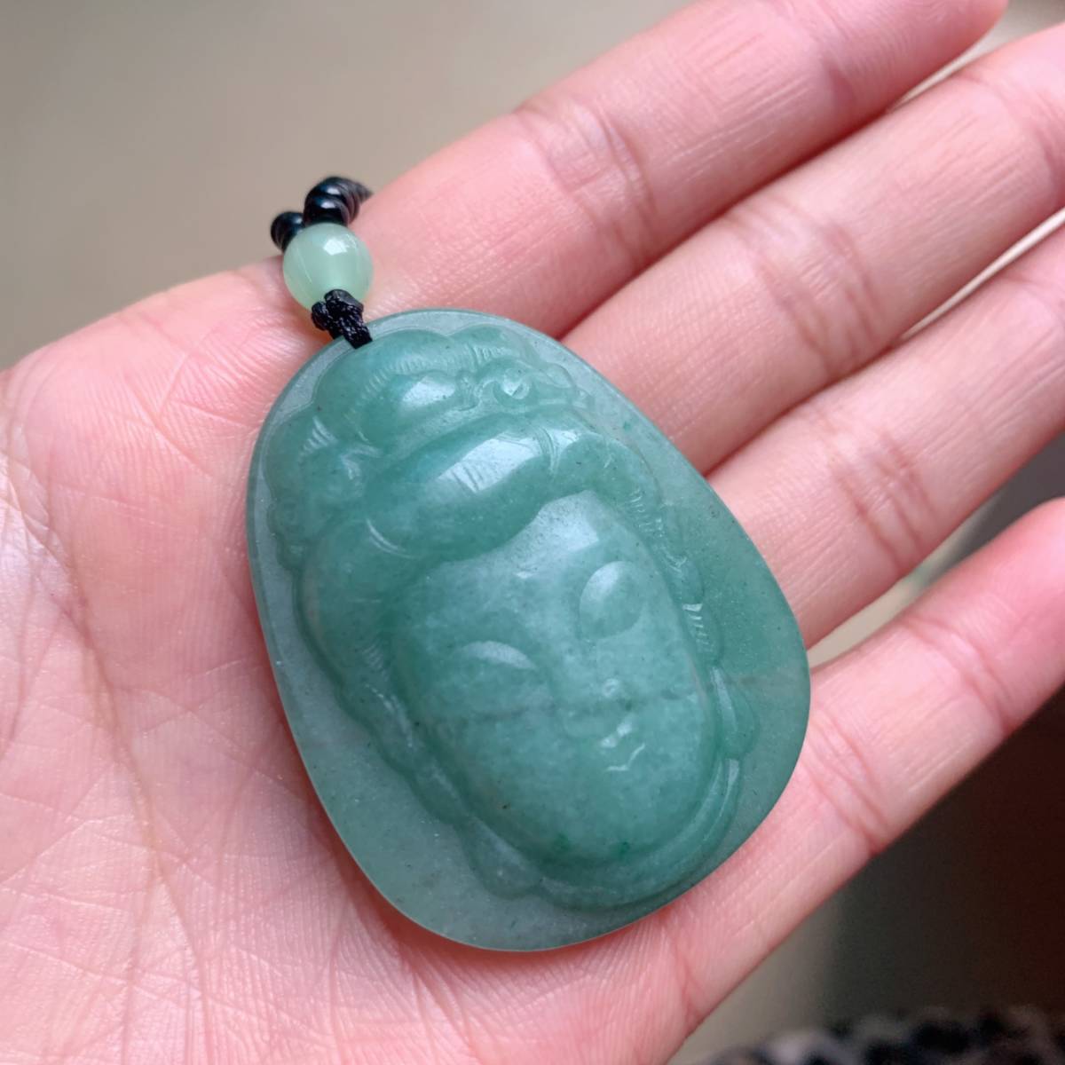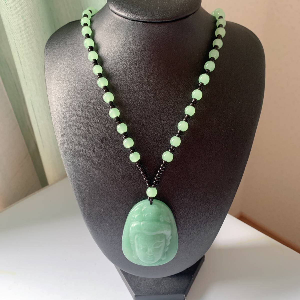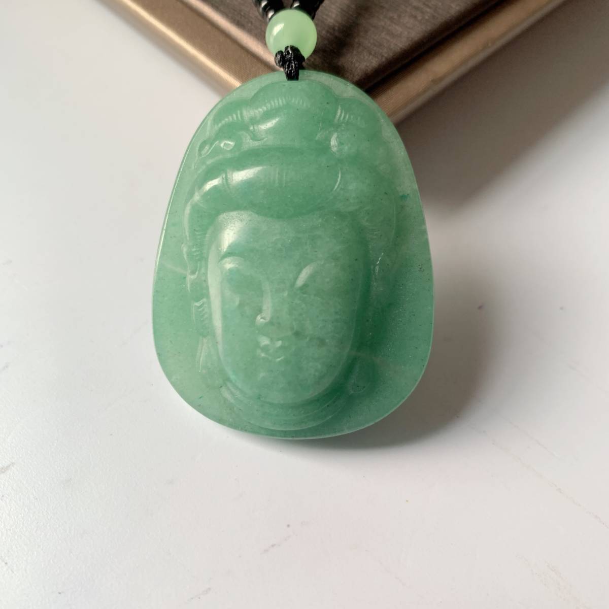 ◇東陵玉◇翡翠・ヒスイ◇ネックレス◇ペンダント◇観音形 彫刻◇お守り◇天然石◇パワーストーン◇巾着袋付き◇プレゼントに 027P11008