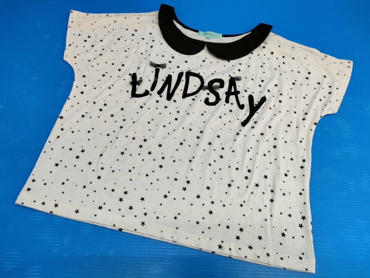 「Lindsay/リンジィ」の子供服 半袖Tシャツ カットソー レース 星柄 ホワイト系 サイズM 150㎝です。