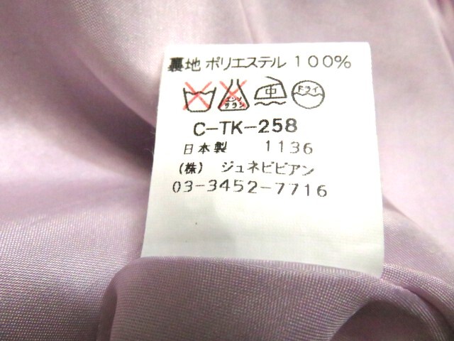■新品同様 上質美品【 Genetamant 】ジュネビビアン 高級 光沢 シャンタン ワンピース 9号 M 日本製 薄紫色 o363