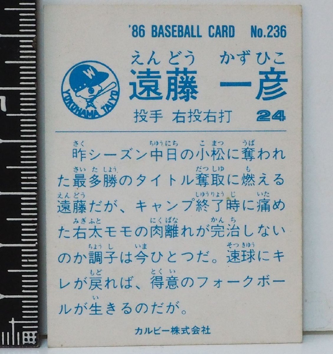 86年 カルビー プロ野球カード No.236【遠藤 一彦 投手 横浜大洋ホエールズ】昭和61年 1986年 当時物 Calbee おまけ 食玩 BASEBALL【中古】
