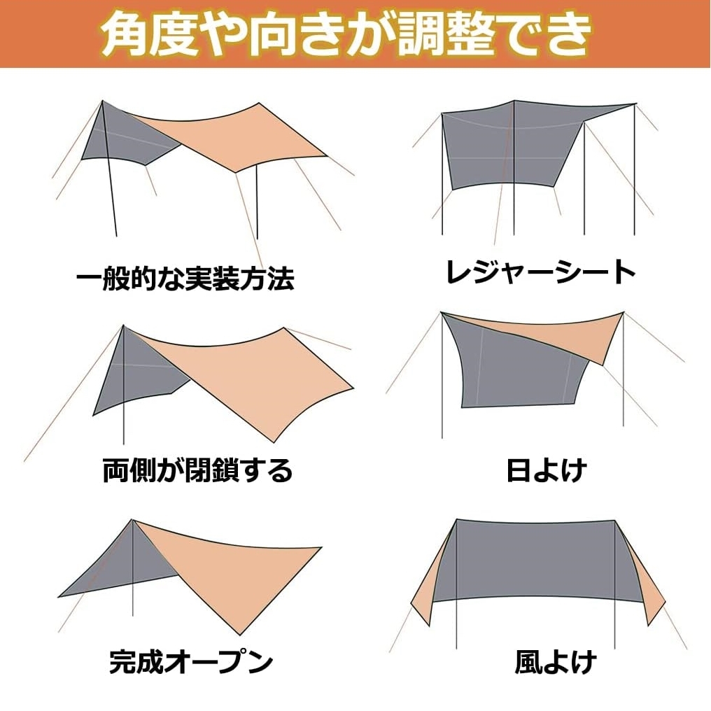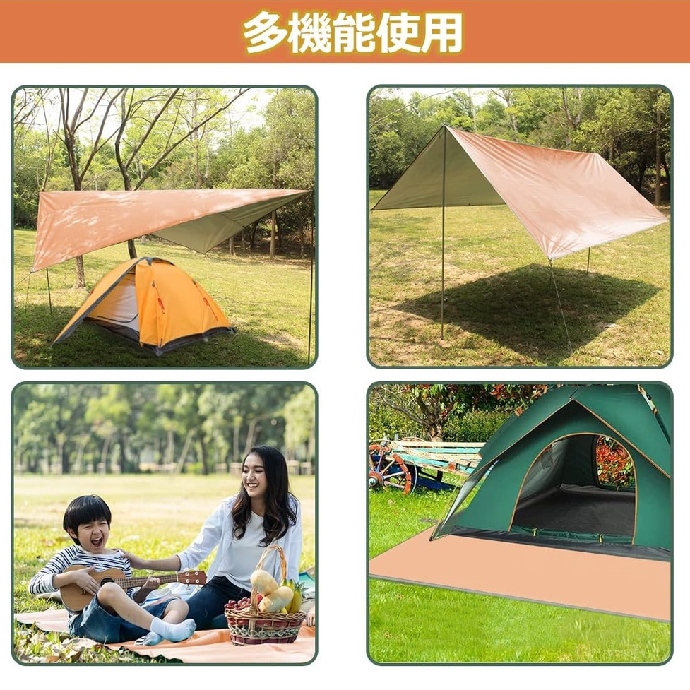 防水のタープとして、キャンプ用、ハイキング、登山用、海辺用、砂浜、お花見、花火大会、ピクニック、運動会、駐車場用、様々なところで利用できます。