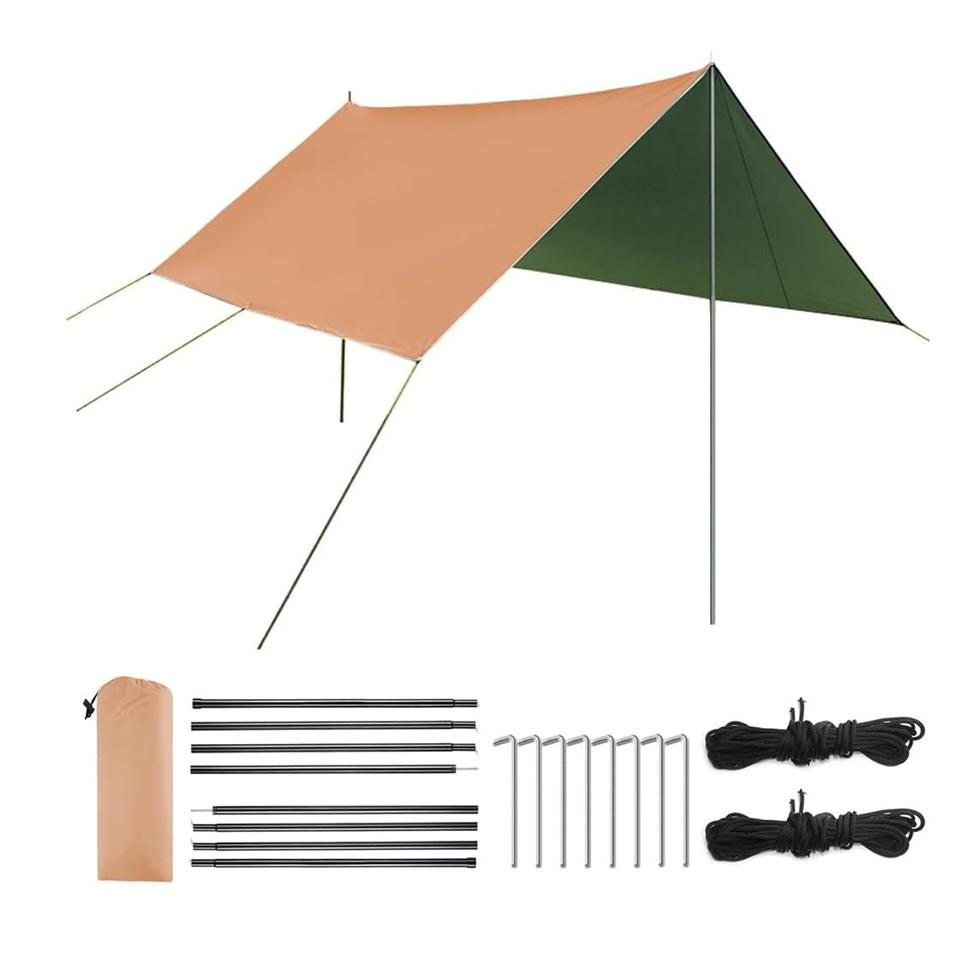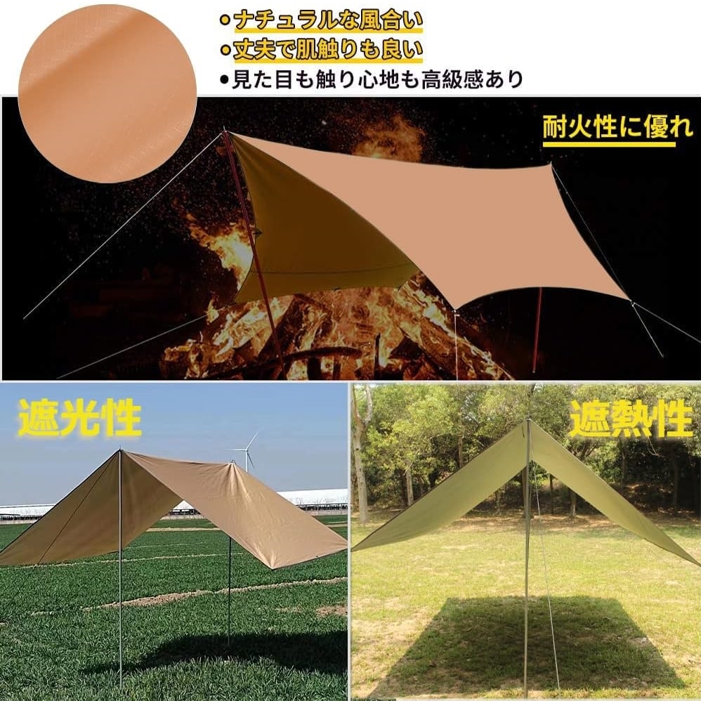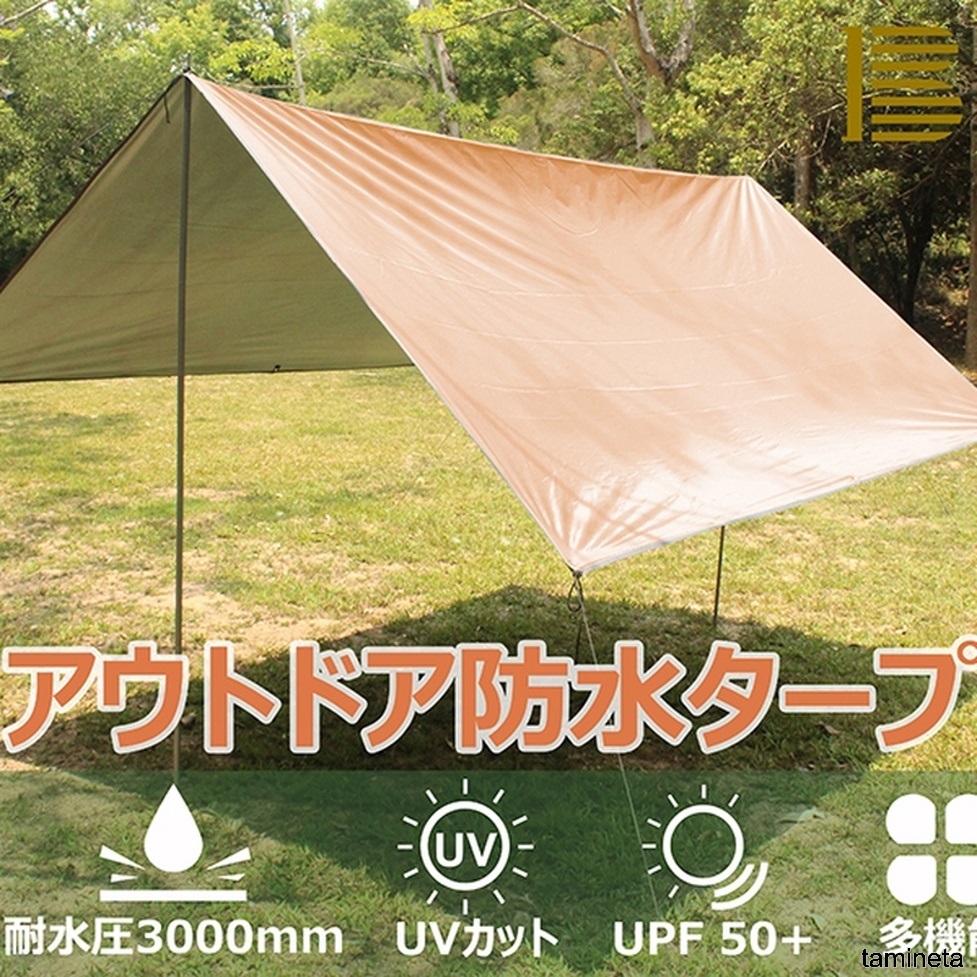 アウトドア防水タープ キャンプテント 日除けシェード ポール付き サンシェルター 3m カーキ 手軽に日陰を作れるうえに、急な雨も防げます