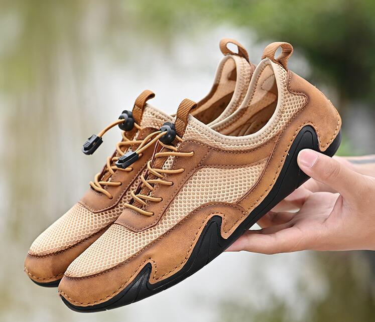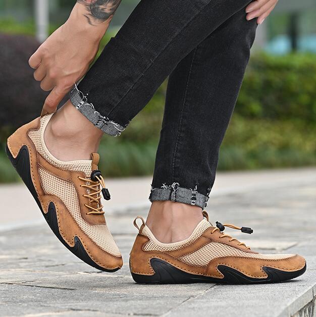 メンズシューズドライビングシューズ 牛革 登山靴 運動靴 本革レザー ランニング ウォーキング 春夏 夏靴 通気性 ブラウン 24.5cm