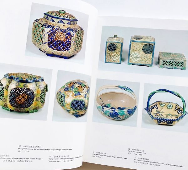 前半では、各種京焼のなかでも典型的な作品を大きな写真でとりあげて鑑賞に供し、