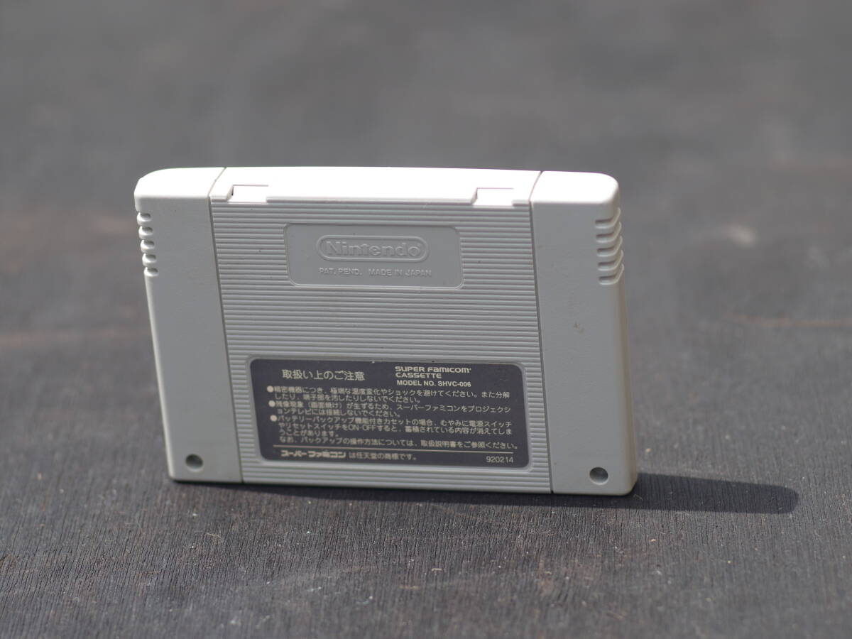 こちらは任天堂スーパーファミコンのソフトです。古いスーパーファミコンソフトはメンテナンスがないものはほとんどが接触不良で動作しません。清掃用アルコールは購入すると高いので、端子を清掃し、プレイ可能と記されたものを購入されることをおすすめします。