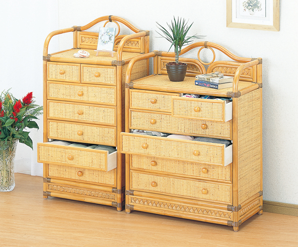 ラタンチェスト 籐家具 チェスト6杯 ワイドタイプ 65センチ幅 引出し収納 W-754 籐整理タンス
