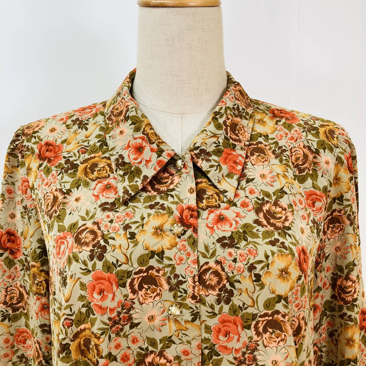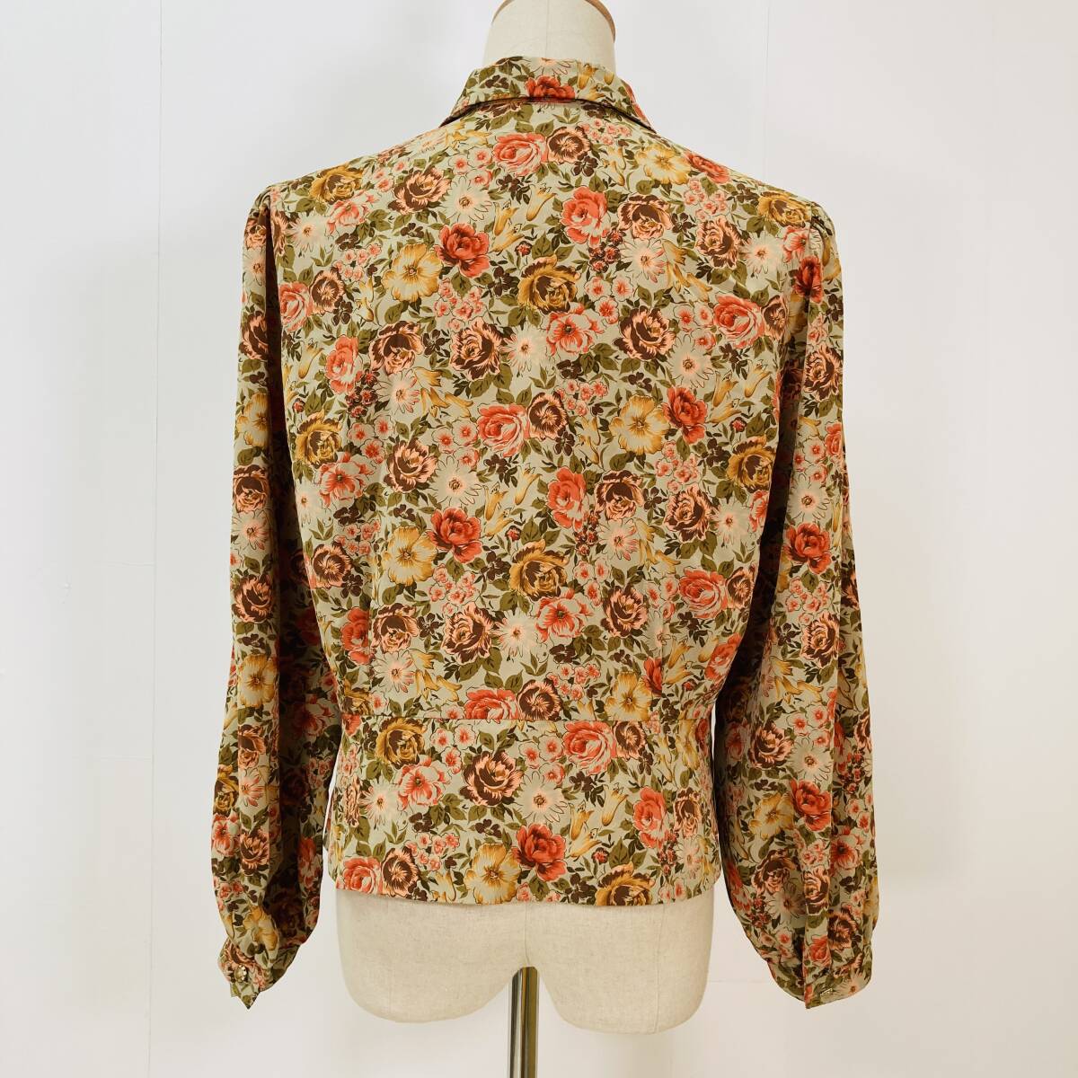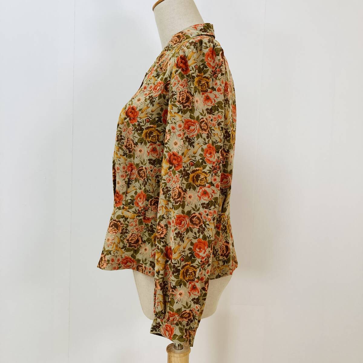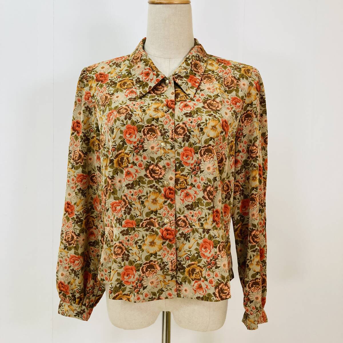 YH0298 美品 VINVERT サンヨー レディース シャツ 長袖 肩パット 薄手 13BR 総花柄 昭和レトロ 上品 華やか 万能 エレガントガーリーチック