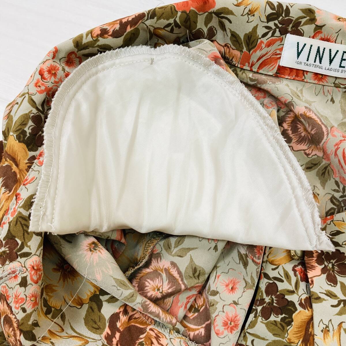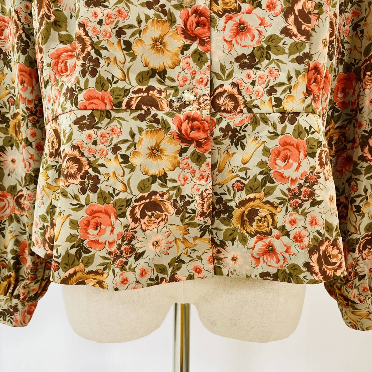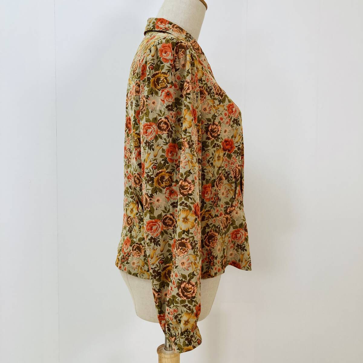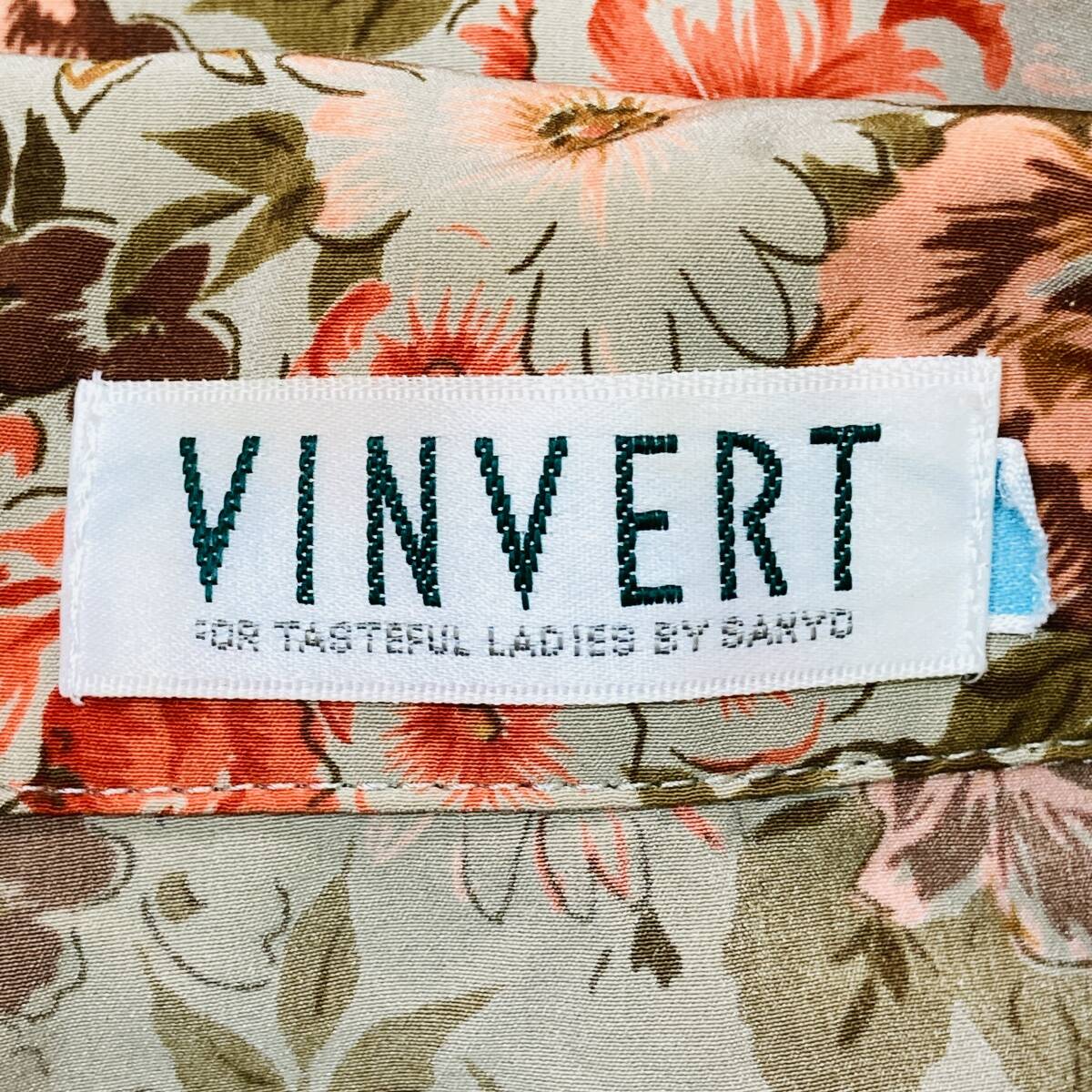 YH0298 美品 VINVERT サンヨー レディース シャツ 長袖 肩パット 薄手 13BR 総花柄 昭和レトロ 上品 華やか 万能 エレガントガーリーチック