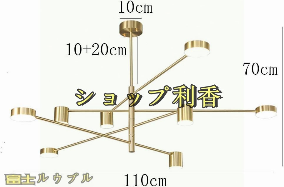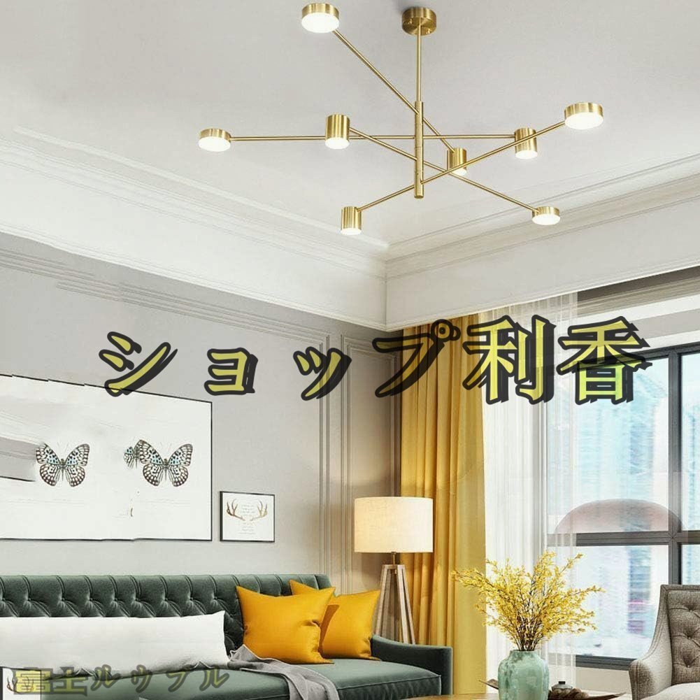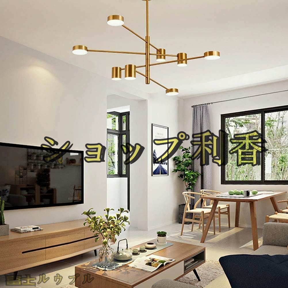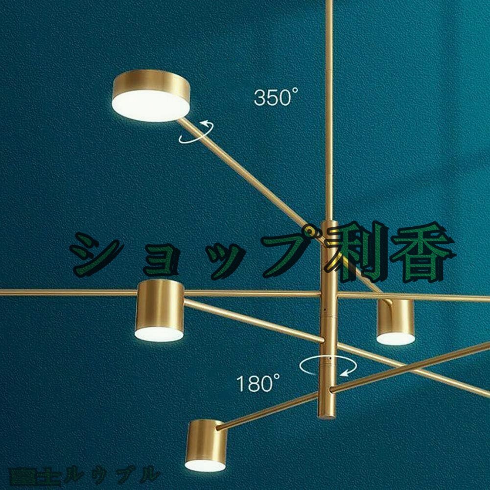 回転ライト高級ランプ 回転調整モバイルスプートニクシャンデリア LED北欧全銅吊り下げ照明器具 高さ調節可能な銅天井ランプ 8ヘッド