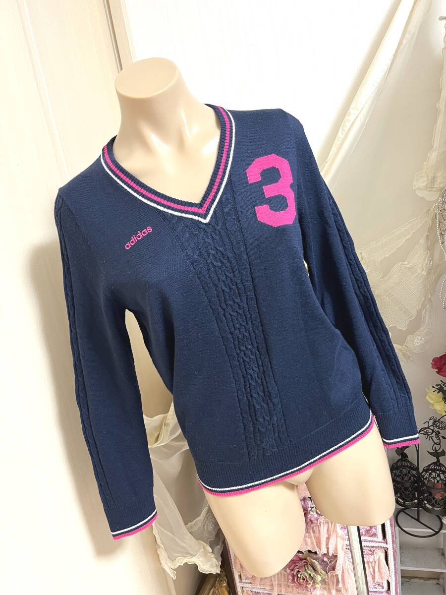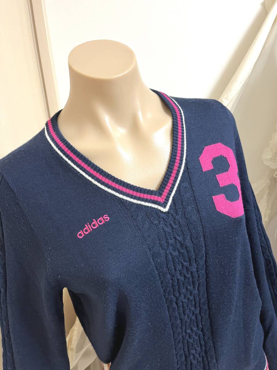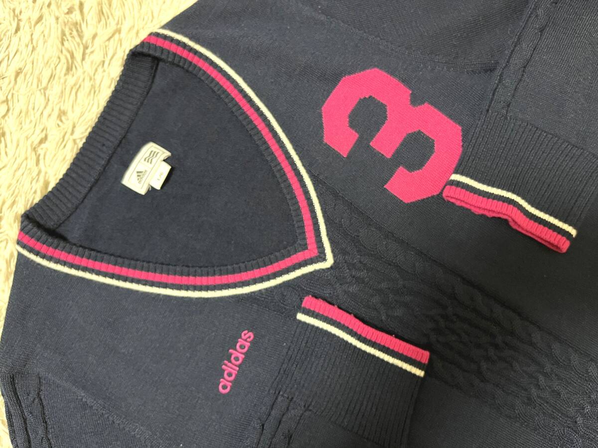 レディースL/Gサイズ:アディダス/テーラーメイドゴルフ◆ウール混ニット*薄手長袖セーター:濃紺ネイビー