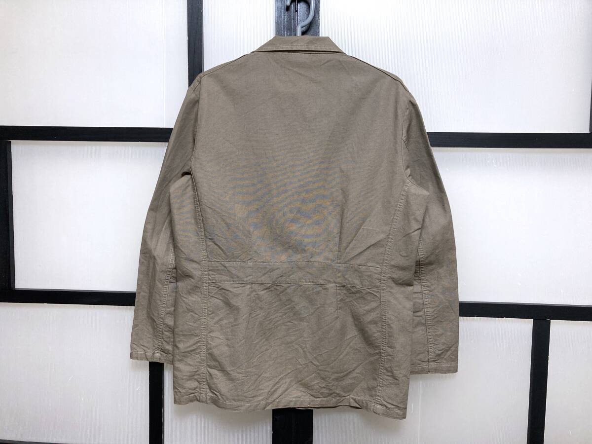 | コメント | (株)ボーイズ取り扱い。フランス製。全体的なデザインはシンプルなシングルの3ボタンタイプで、後ろのスソはノーベント、ポケットは左ムネと両スソ、内側の右ムネに付いたデザインになります。袖にボタンは無し。バックに背バンド付き(写真6枚目)。裏地は付いていないです。他にもベトラやダントン、ケンペルなどのアイテムや、その他いろいろなアイテムを出品しています。よろしければご覧ください。 |