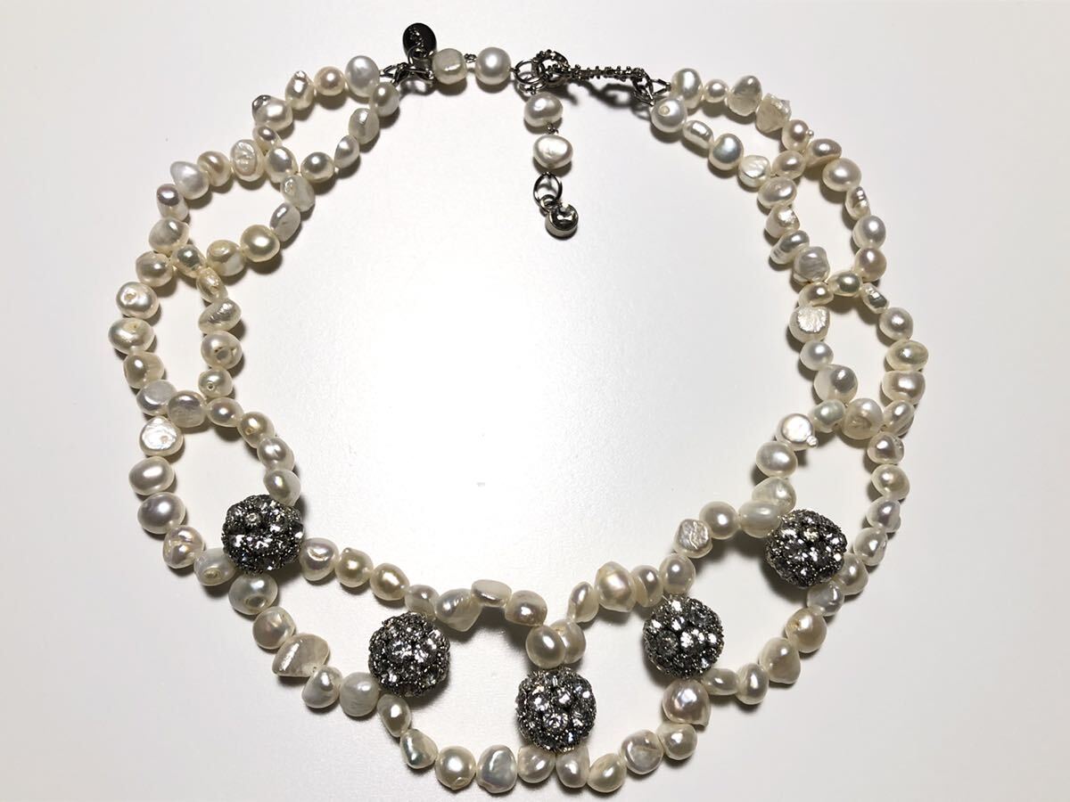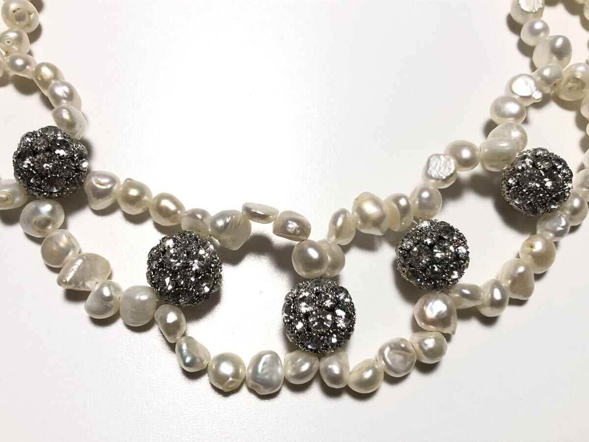 ブランド名不明、バロック真珠、ジルコニアを使用した、デザインネックレスです。長さ調節可能、状態良好です。