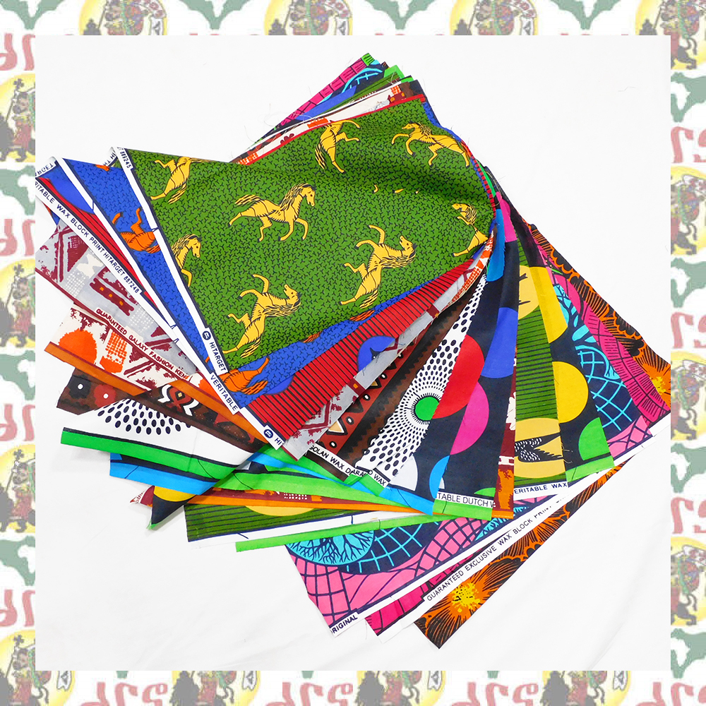 アフリカ布 アフリカ生地 ハギレ 45cm巾 x 55cm縦 x 15柄セット 綿100 J36(パッチワーク 手作りマスク 小物作成に)