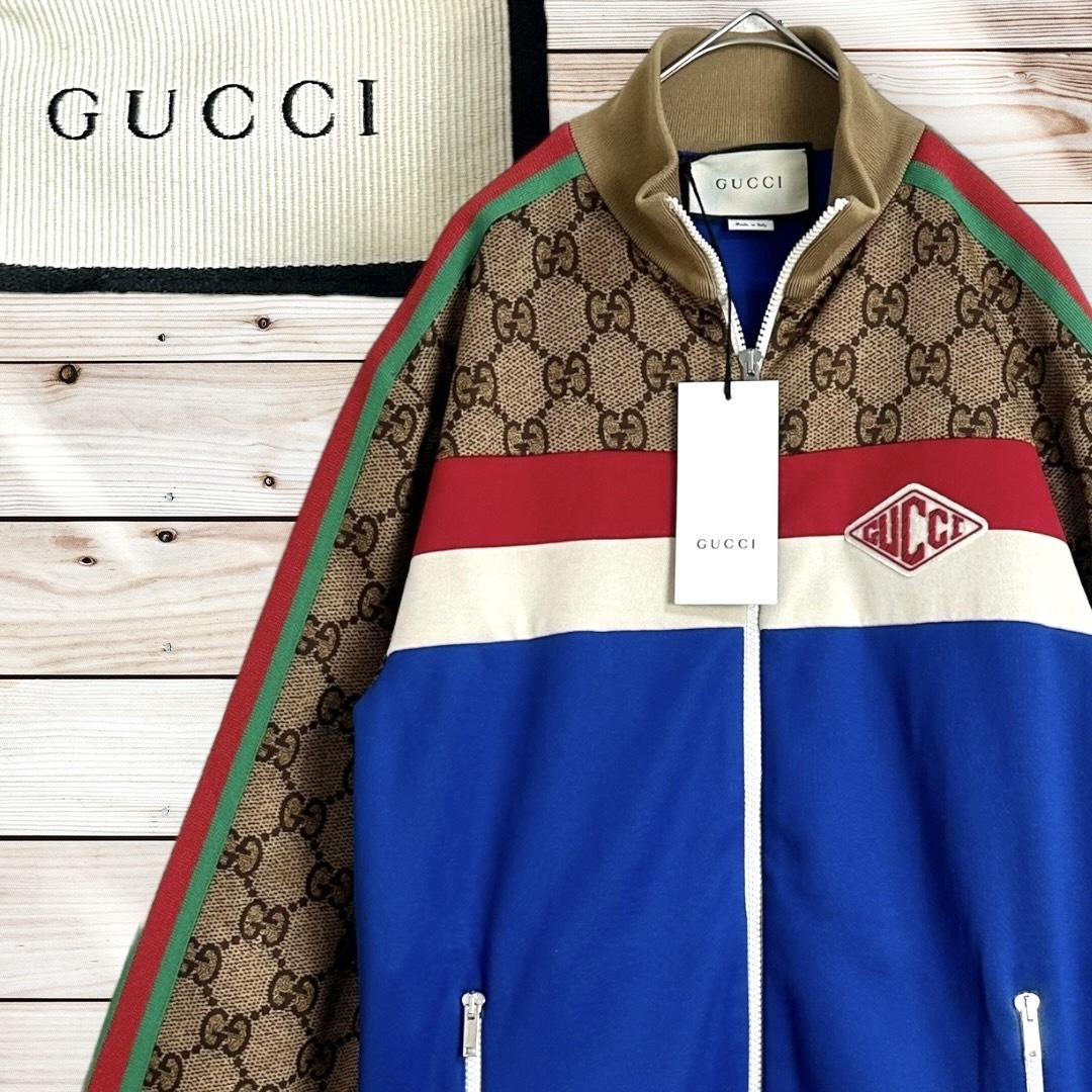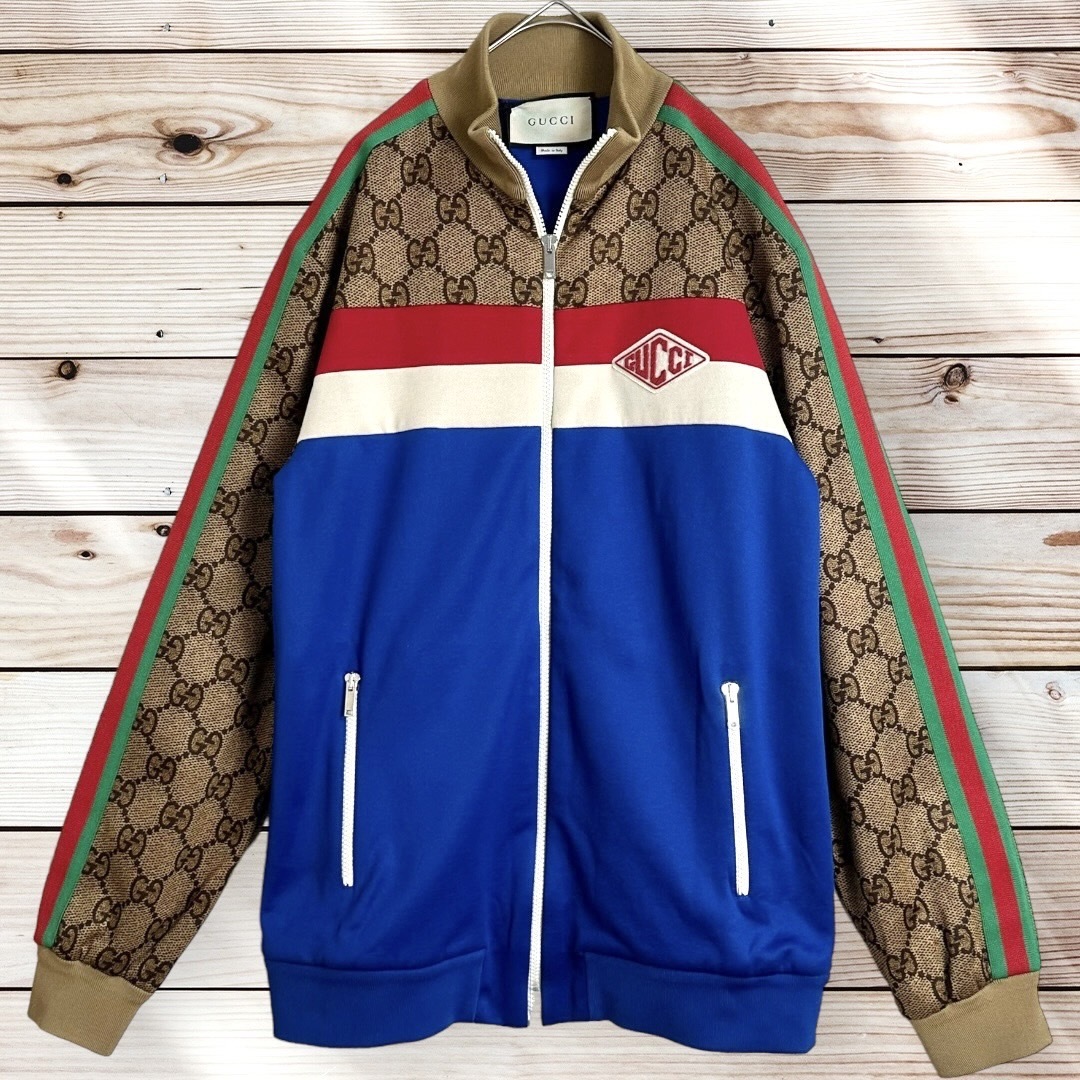 美品☆人気モデル☆GUCCI トラックジャケット タグ GG柄 シェリーライン グッチ M フルジップ ジップアップ ジャージ ワッペン 刺繍 正規店
