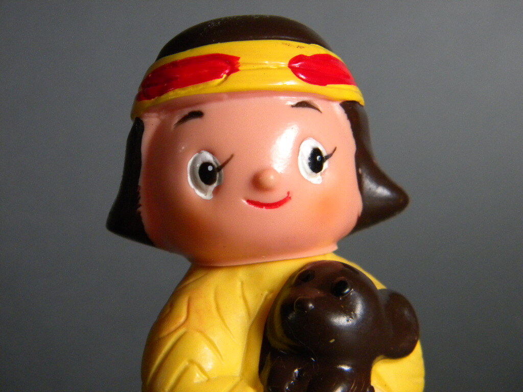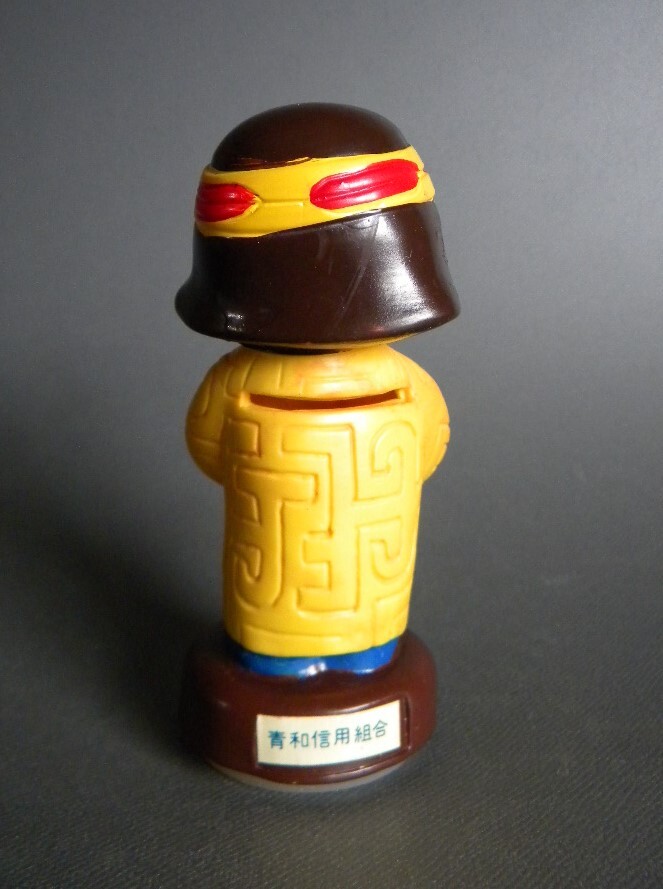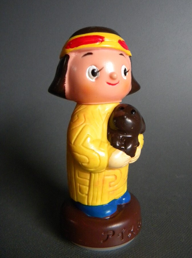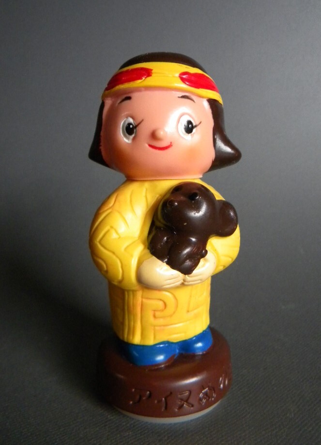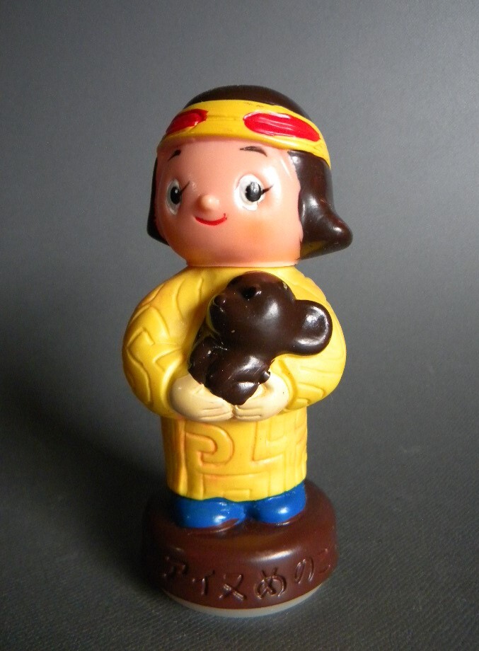 当時物 ★★アイヌめのこ sofvi 女の子&こぐま 先住民族 コインバンク !! 貯金箱 ソフビ 景品おまけ 青和信組★★未使用 デッドストック品
