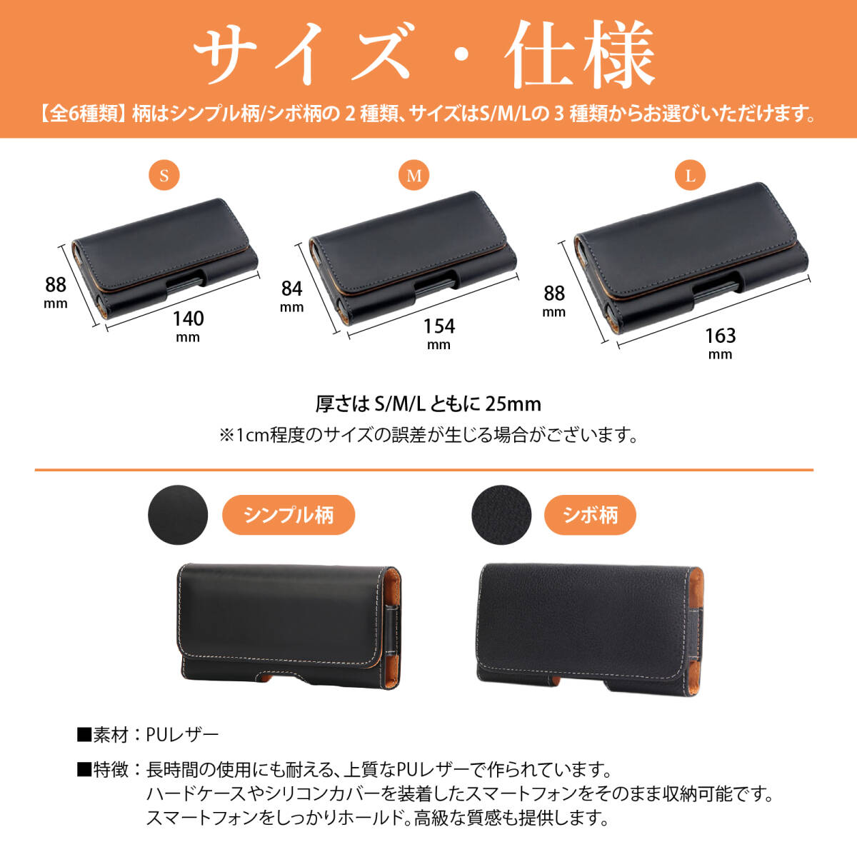 | 商品説明 | 出品:本体のみ ※出品物は写真のとおりです。事前にご確認ください。 〇商品について 【特徴】横向きで安定感のある設計。蓋の部分は他の部分より若干厚めに作られているので外部からのダメージを吸収、スマートフォンをしっかりホールドしてくれます。 iPhone pro max Xperia Galaxy pixel等のスマホに汎用品のケースとして使用可能です。 【収納、取り出し】ハードケースやシリコンカバーを装着したスマートフォンをそのまま収納可能です。またマグネットが内蔵されており、ケースにぴったりと収まりスマホをしっかり保護します。ケース下部に穴が開いており、指で押し出すことでスマートフォンを簡単に取り出せます。出し入れも簡単でとっても便利、ストレスを感じません。 【使用方法】ベルトに装着可能なスマホポーチであり、上下から二重の固定でしっかりとベルトで固定し装着することで落下防止、スマホを持ち運ぶ煩わしさから解放されます。 またコンパクトなデザインで、車の運転中でもストレスを感じません。腰のベルト以外にもショルダーバック等にも装着可能。アイデア次第で多用途に使用できます。 【素材、種類】PUレザーを採用。特徴:長時間の使用にも耐える、上質なPUレザーで作られており、高級な質感を醸し出します。スムース(シンプル)柄とシボ柄の2種類を用意。Mサイズ84×154mm 【重要事項】本品は輸入品につき細かな傷やスレがある場合があります。取扱説明書は付属しておりません。 〇商品の発送について 【送料について】 送料は全国一律、1000円とさせていただきます。 ※複数個の落札にも対応しておりますが、複数個の落札の場合は 落札個数×1000円が送料となります。 複数個落札の場合は送料を変更しますので代金お支払いの前に ご連絡をお願いいたします。 【日時指定、時間指定は不可】 本商品については日時指定、時間指定は不可となります。 【発送元について】 発送は私の商品をAmazonの倉庫に預けていることから、Amazon倉庫からの発送となります。なお商品については検品された商品について、私が輸入をしAmazon倉庫に預けているものを発送しますので、「無在庫転売」等の商品でありません。ご安心ください。 ※注意事項※ 神経質な方は入札お控えください。 本品は輸入品であることから、細やかな傷がある場合がございます。 そのため、購入してスマホが入らなかった等の理由も含め、初期不良以外はノークレーム・ノーリターンでお願い致します。いかなる理由がありましても、低価格での出品ですので返品、返金などは致しませんのでご了承ください。 精密機器のため、梱包には最新の注意を払い発送をしておりますが、お届けした際、商品説明に記載の動作状況と異なる場合でも、返品返金を含め、動作保証、状態保証等は一切行いませんので、ご理解のある方のみご入札をお願いいたします。 落札後のキャンセルはおうけいたしません |