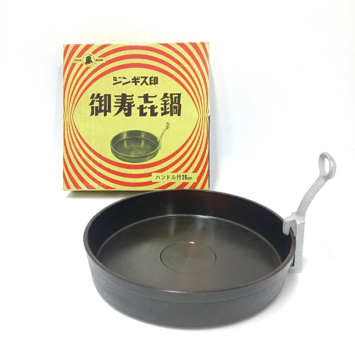 すき鍋 すき焼き鍋 御寿喜鍋 ジンギス印 ハンドル付 鉄鍋 26cm 長期保管品 すきやき レトロ 調理器具 なべ JINGISU SUKINABE【道楽札幌】
