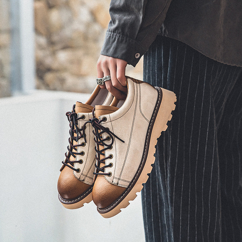 スニーカー メンズ 靴 ローカット 厚底 本革 ウォーキングシューズ カジュアルシューズ 通学靴 ライダース 米色 25cm