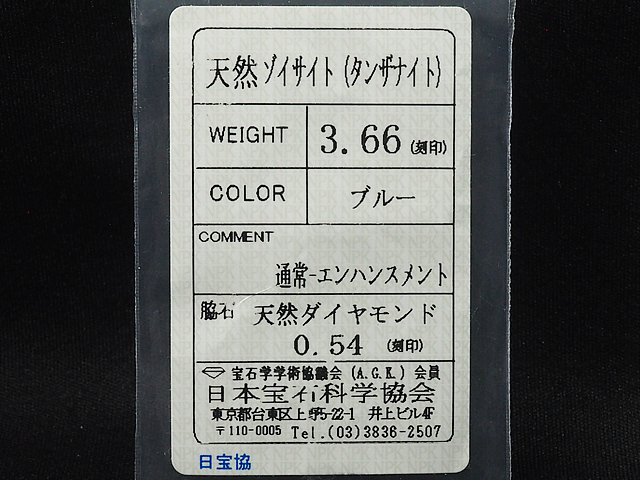 備考:ルーペで見るとタンザナイトにわずかな傷、地金部分に微細なスレや小傷が見られます。お付けになられて目立つような傷はなく、状態の良いお品物となっております。