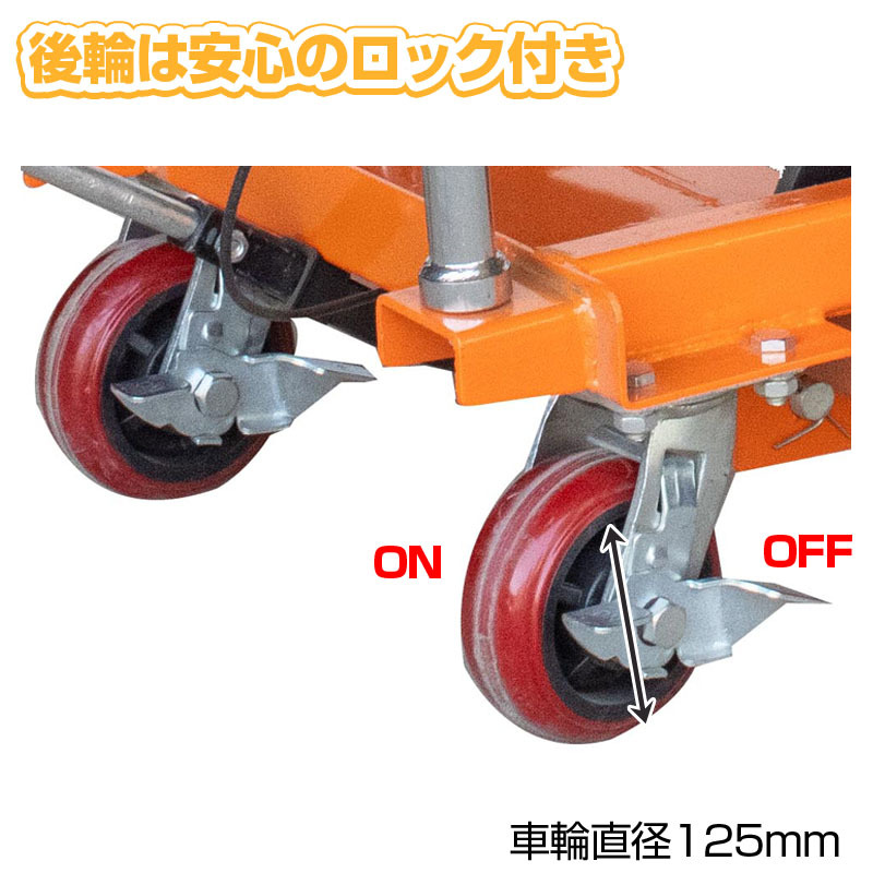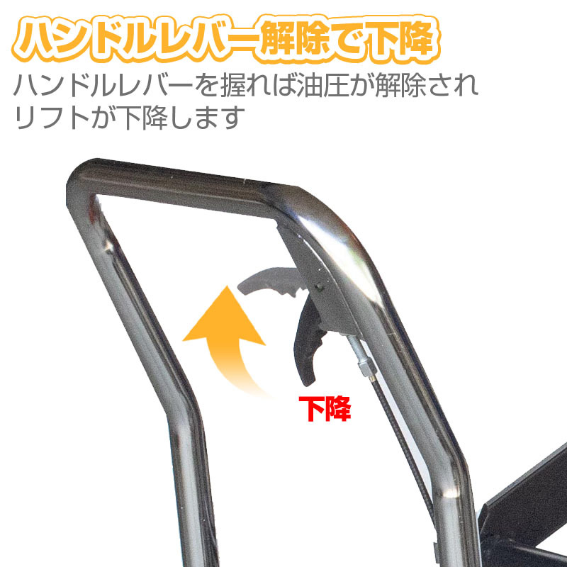 ・ペダルを踏む事により、任意の位置まで上昇出来ます。 下降レバーの加減で下降スピードの調整が可能です。