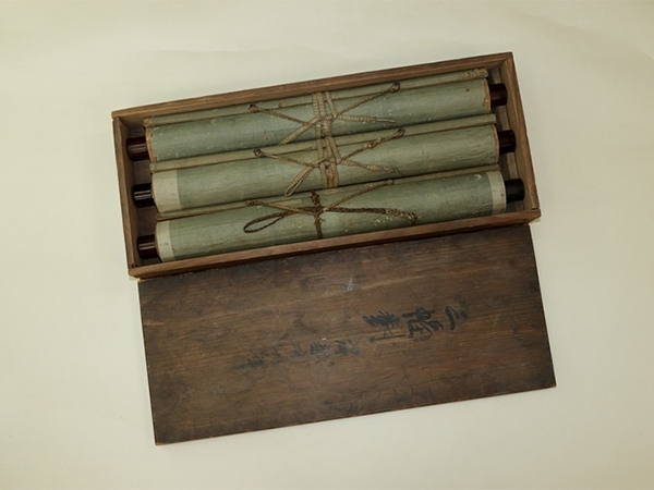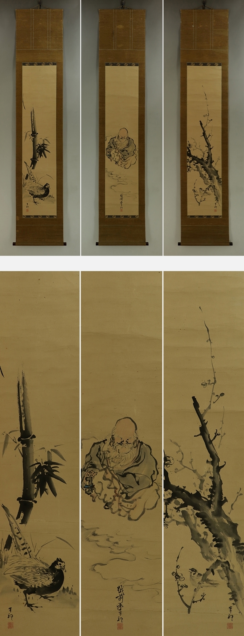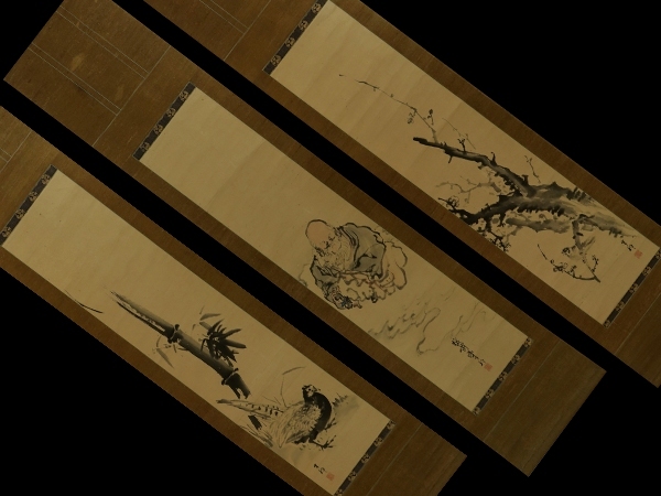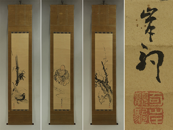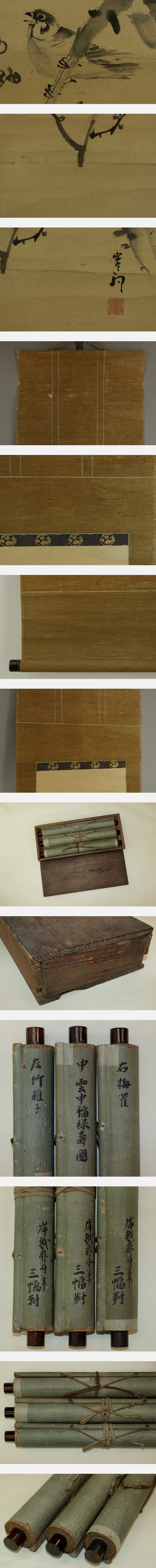 | №2310002【模写】岸駒【三対幅・慶祝図】◆紙本◆合箱◆掛軸 | |