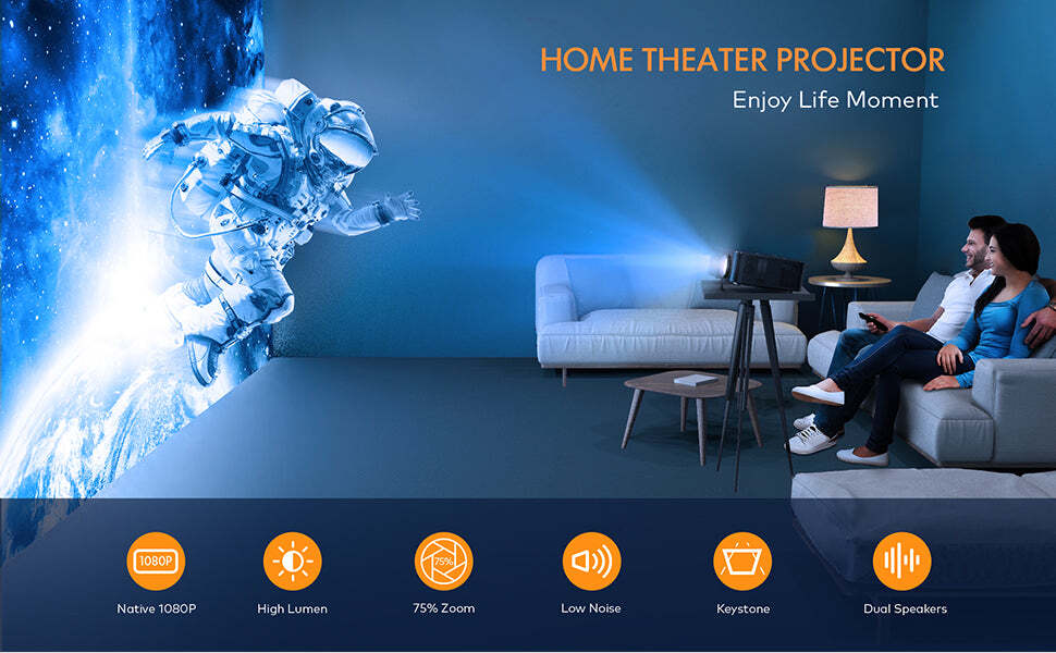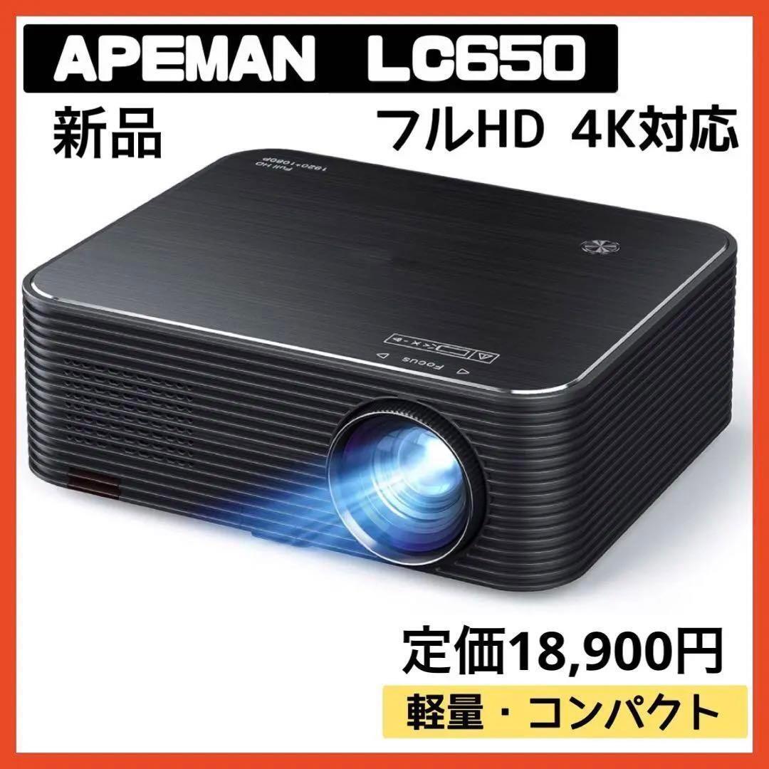 新品【APEMAN・LC650】プロジェクター 1920*1080 6600lmフルHD ±25°電子台形補正 デュアルステレオスピーカー 300インチLEDディスプレ