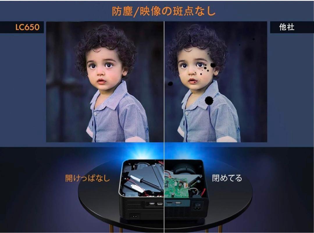 【防塵&低騒音設計】 光学部品の完全密閉設計により、内部LCD画面をホコリか
