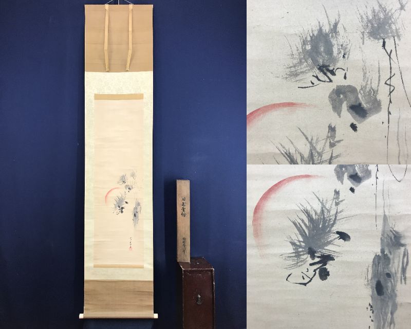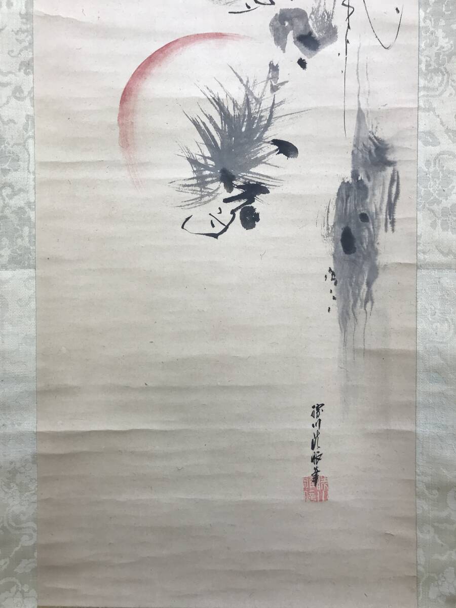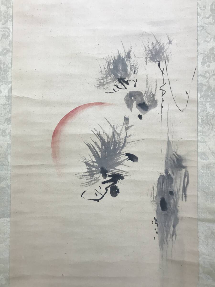 真作/狩野勝川院/日ノ出老松図/旭日老松図/正月掛軸/江戸期/掛軸☆宝船☆AF-294