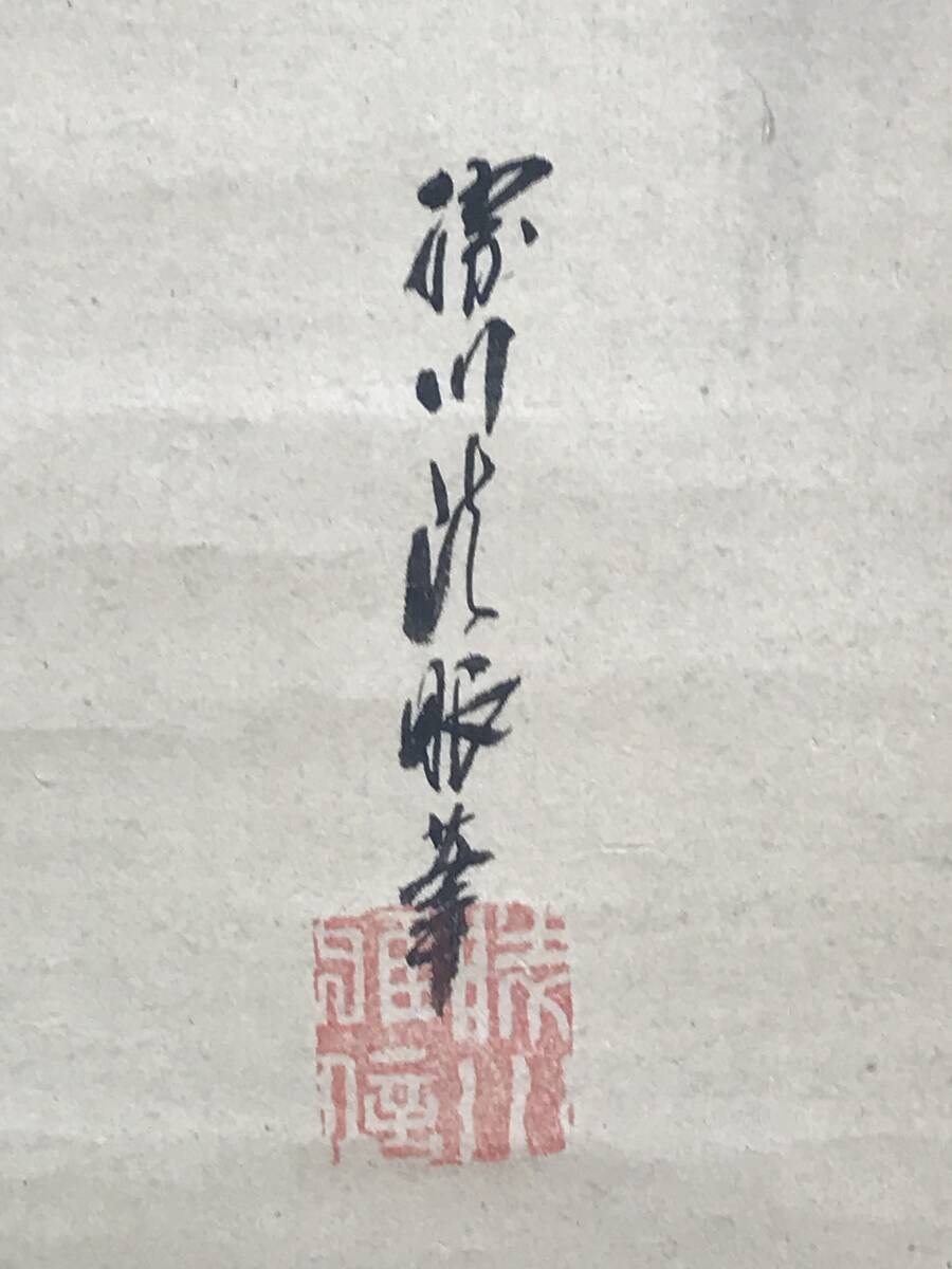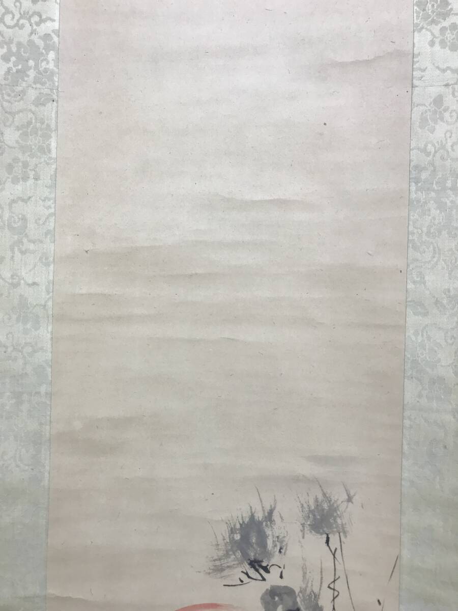 【作品状態】 本紙は紙本肉筆です。本紙は薄汚れ、多少の巻シワあります。表装は絹表装で、多少の時代感あります。